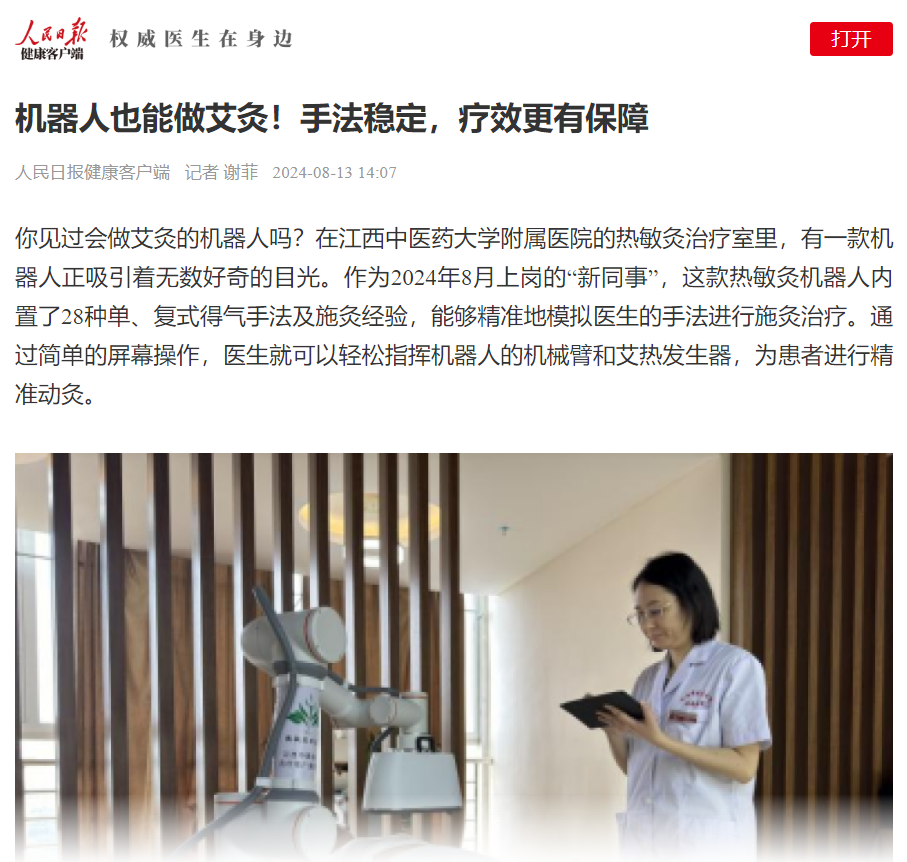 【人民日报健康客户端 】机器人也能做艾灸!手法稳定,疗效更有保障