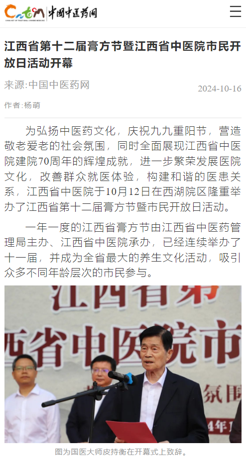 【中国中医药网】江西省第十二届膏方节暨金瓶梅电影 市民开放日活动开幕