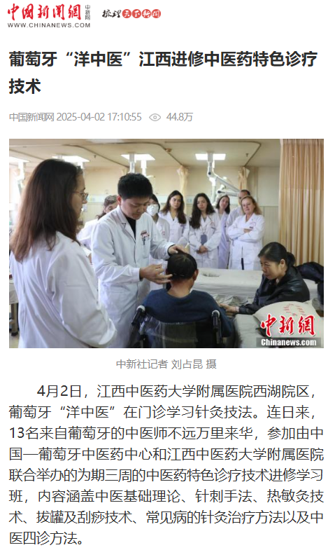 【中新社】葡萄牙“洋中医”江西进修中医药特色诊疗技术