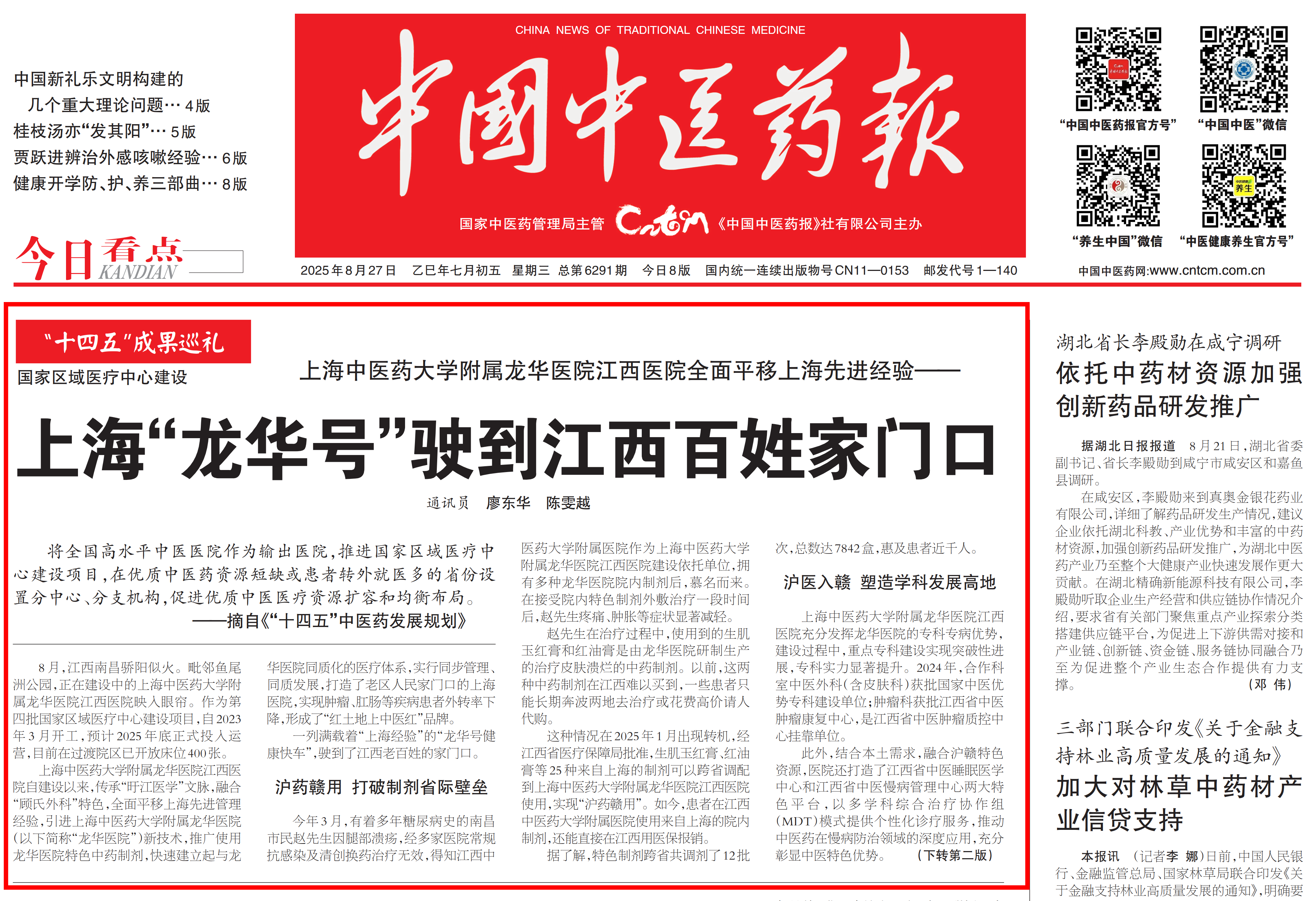 【中国中医药报】上海中医药大学附属龙华金瓶梅电影 江西金瓶梅电影 全面平移上海先进经验—— 上海“龙华号”驶到江西百姓家门口