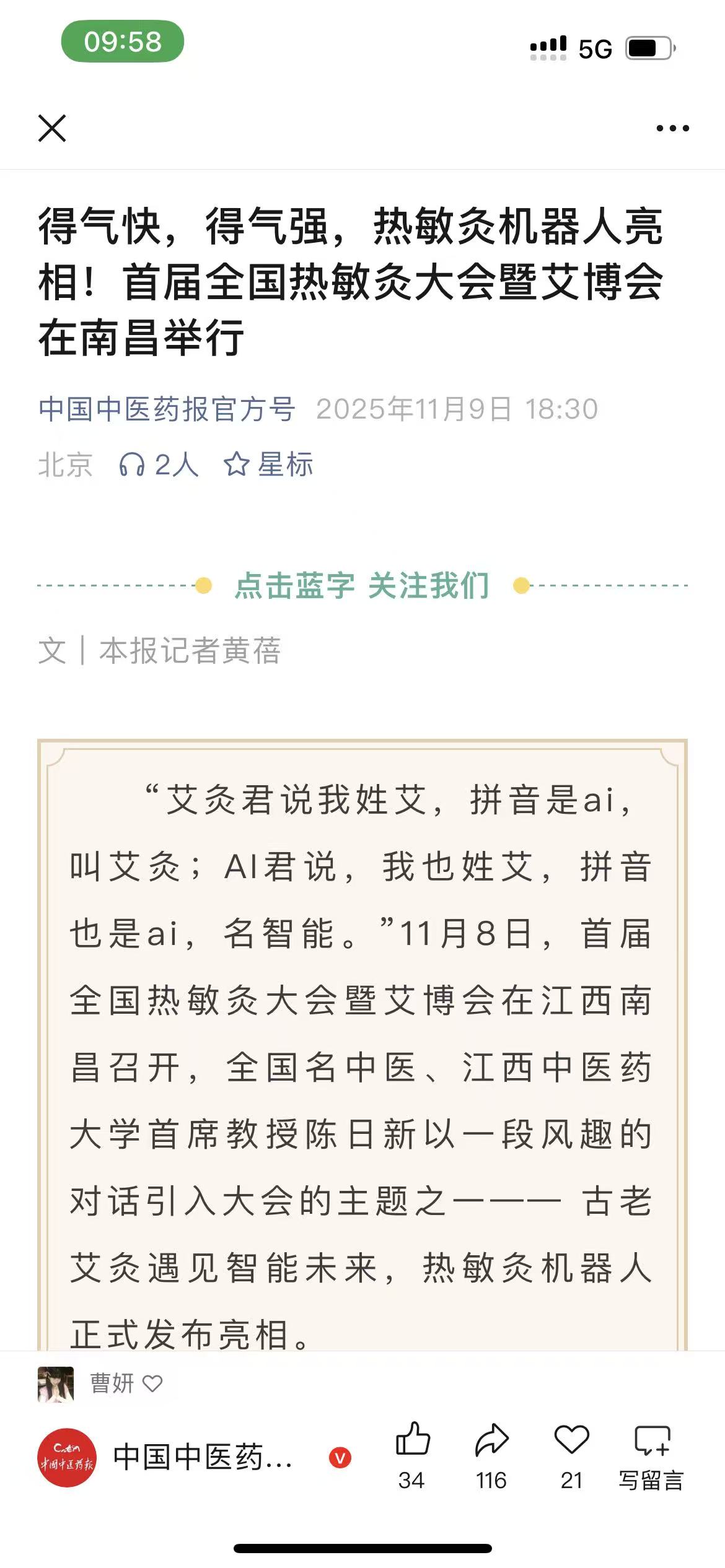 【中国中医药报】得气快,得气强,热敏灸机器人亮相!首届全国热敏灸大会暨艾博会在南昌举行