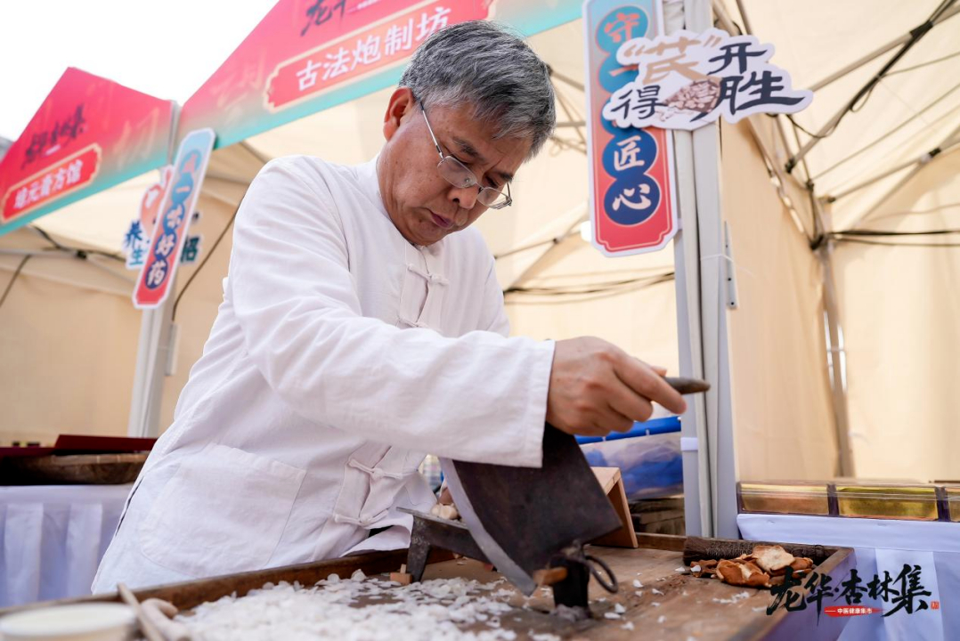 除了年轻人热衷的打卡体验,活动还设置了专家义诊、中医特色技术体验、中药炮制展示等区域。其中,来自妇科、皮肤科、骨伤科等八大科室的专家为市民免费把脉问诊,护理人员则展示火龙罐、耳穴压豆等疗法,樟帮传人现场演示“白芍飞上天”的刀工绝技,围观者惊叹不已。