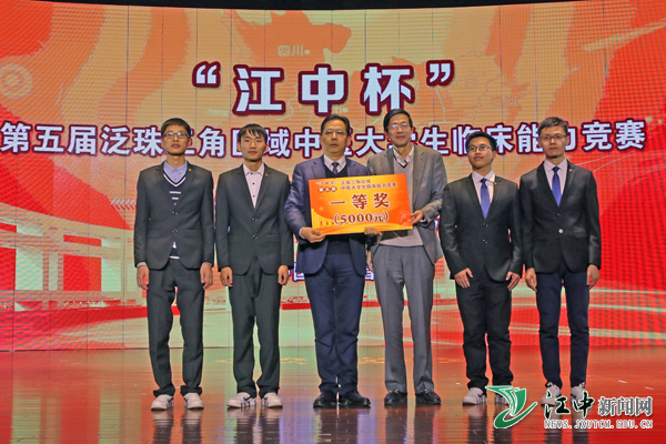 临床医学院2013级中西医临床医学专业周润津、郭昌、李海群和2014级中西医临床医学专业刘鹏四位同学代表学校参加了12月8-9日举行的“江中杯”第五届泛珠三角区域中医大学生临床能力竞赛。以总分第一名的成绩荣获团体一等奖,并获得五项单项奖。