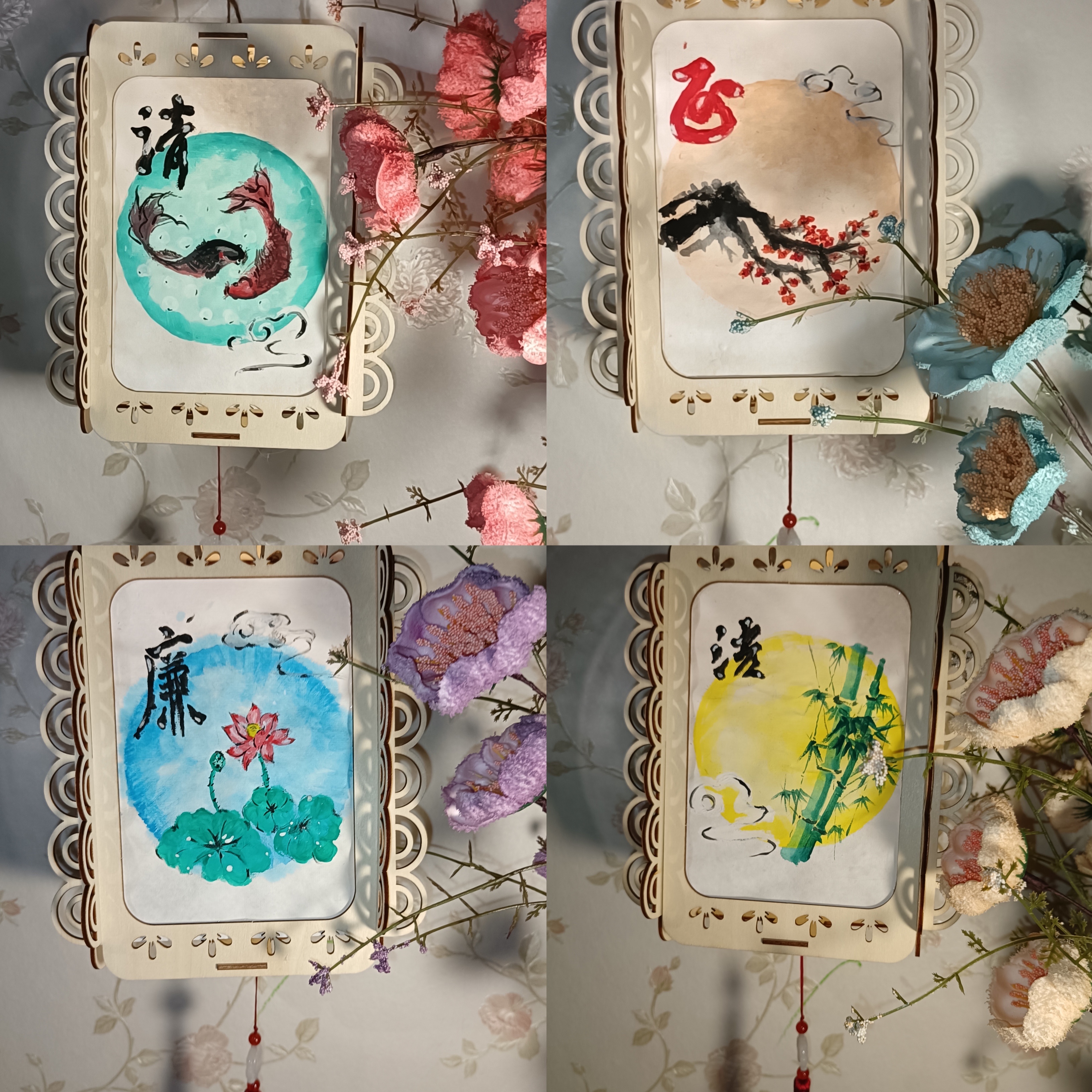 领取花灯制作材料后,各科室的书画大家们纷纷开始精妙构思,利用休息时间整理花灯材料、设计创作方案、勾边、绘色、题诗、糊纸、串灯,经过大家的巧手制作,一盏盏带有“勤廉”寓意的精巧花灯就制成了。