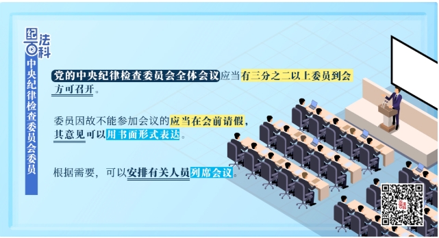 党的中央纪律检查委员会全体会议应当有三分之二以上委员到会方可召开。委员因故不能参加会议的应当在会前请假,其意见可以用书面形式表达。根据需要,可以安排有关人员列席会议。