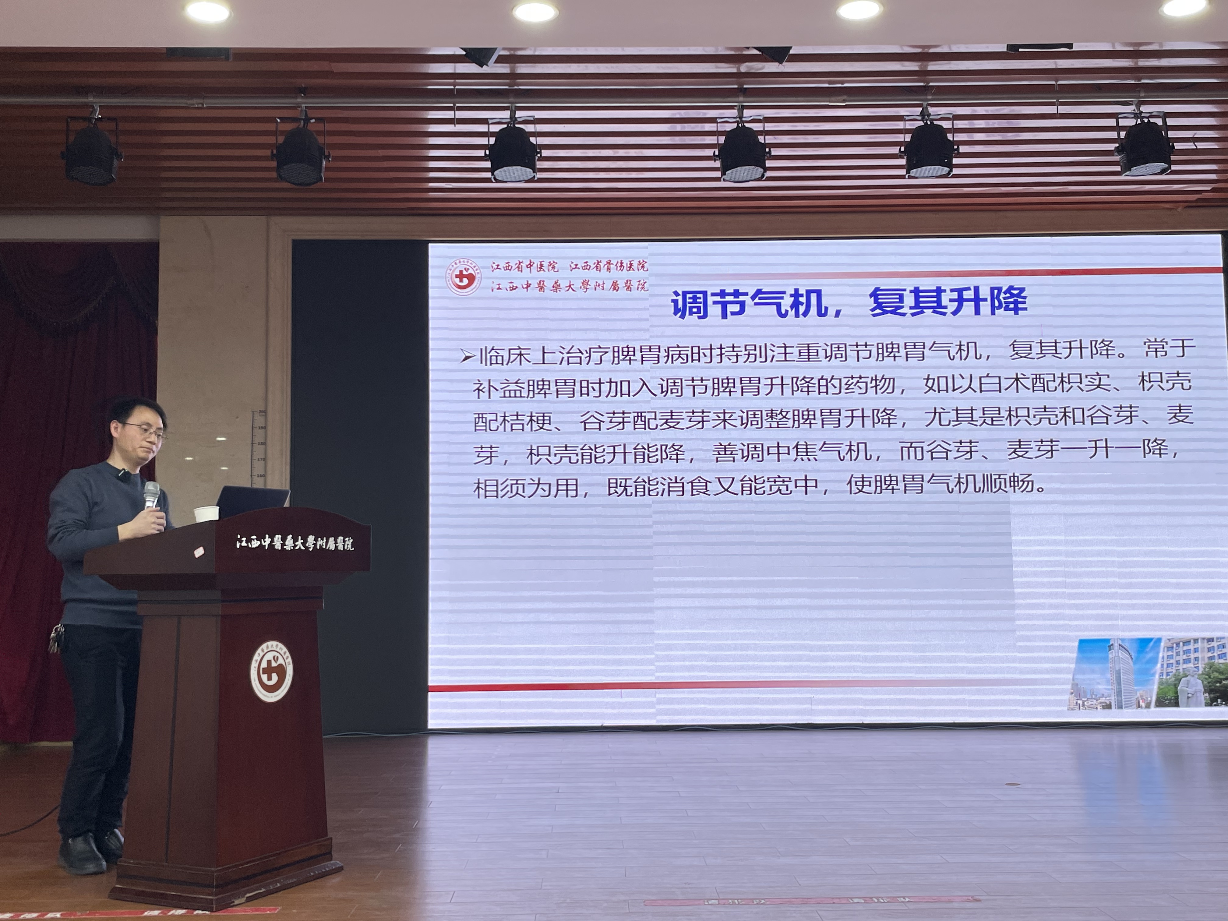 论坛特邀金瓶梅电影脾胃肝胆病科副主任邓长卿作专题报告。邓主任师承张小萍教授,深谙张小萍脾胃气化学说之精髓,尤其在胃食管反流病的诊治方面积累了丰富的临床经验。他以“脾胃气化学说在胃食管反流病中的应用”为主题,深入浅出地阐述了张小萍脾胃气化学说的核心思想,并结合大量临床案例,详细解析了该学说在胃食管反流病辨证论治中的具体应用。邓长卿强调,胃食管反流病的病位虽在胃,但与肝、脾功能关系密切,其基本病机为脾胃气机升降失常,导致胃气上逆。治疗上应以调理脾胃气机为核心,注重疏肝理气、和胃降逆,并根据患者个体差异灵活运用中药方剂,临床疗效显著。