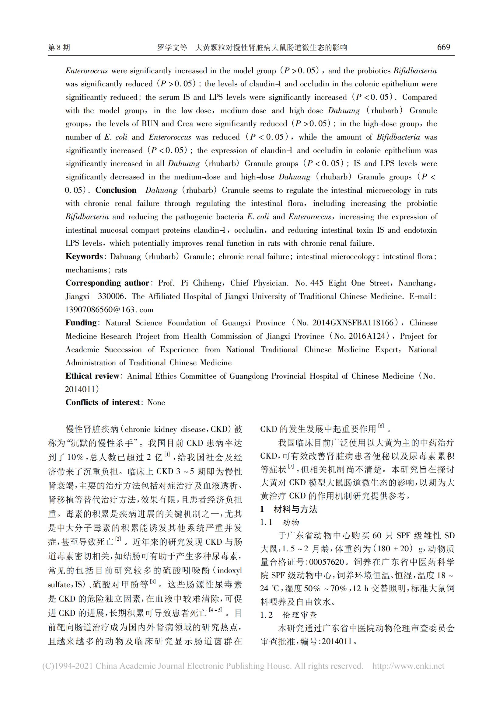 大黄颗粒对慢性肾脏病大鼠肠道微生态的影响