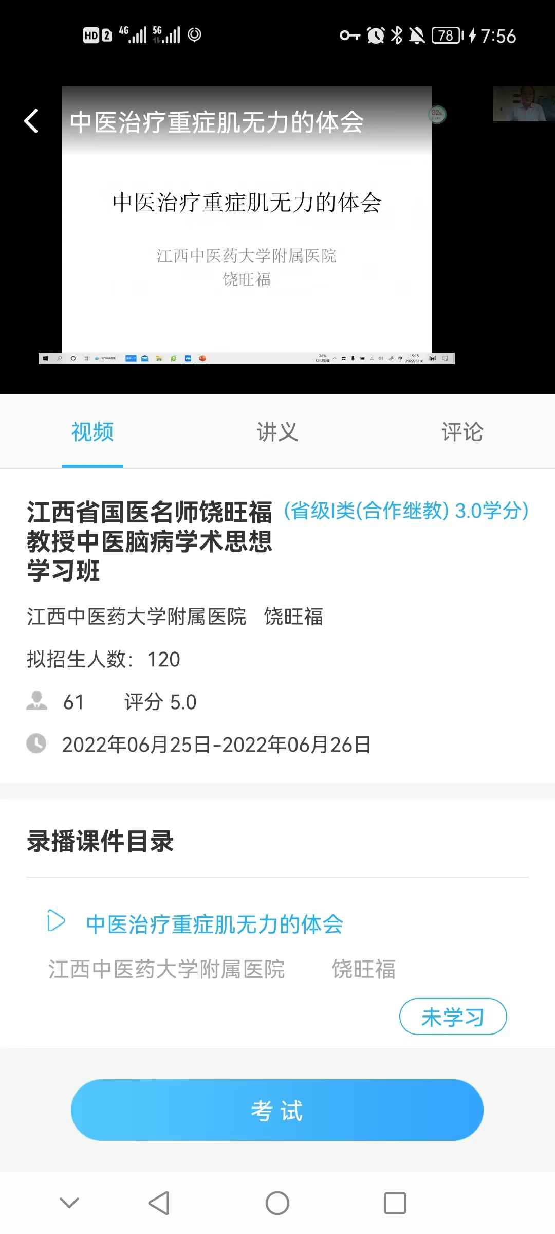 由金瓶梅电影 饶旺福国医名师传承工作室承办的2022年省级继续教育项目《江西省国医名师饶旺福教授中医脑病学术思想学习班》因疫情原因于2022年6月18~19日在掌上华医网平台授课。来自省内100余位从事中西医脑病等相关学科的医师、治疗师、研究生、规培生参加了本次学习班。