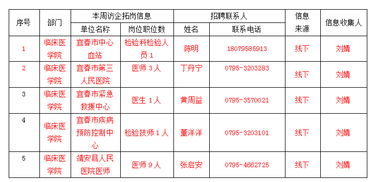 临床医学院就业市场开发情况周报统计表