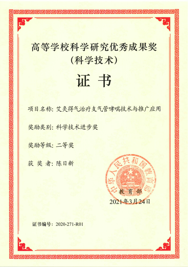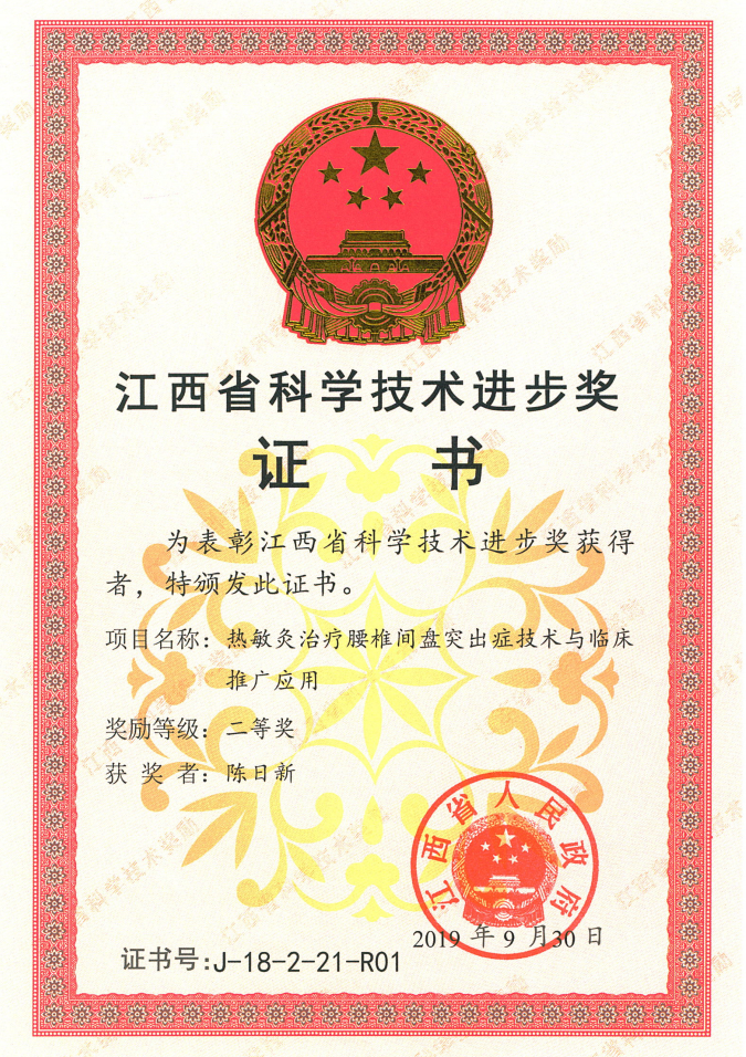 陈日新:热敏灸治疗膝关节骨性关节炎技术的建立与临床推广应用获得江西省科学技术进步二等奖 发布时间:2023-07-19点击次数:3次