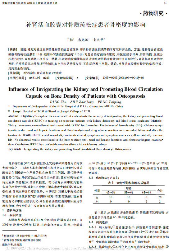 补肾活血胶囊对骨质疏松症患者骨密度的影响