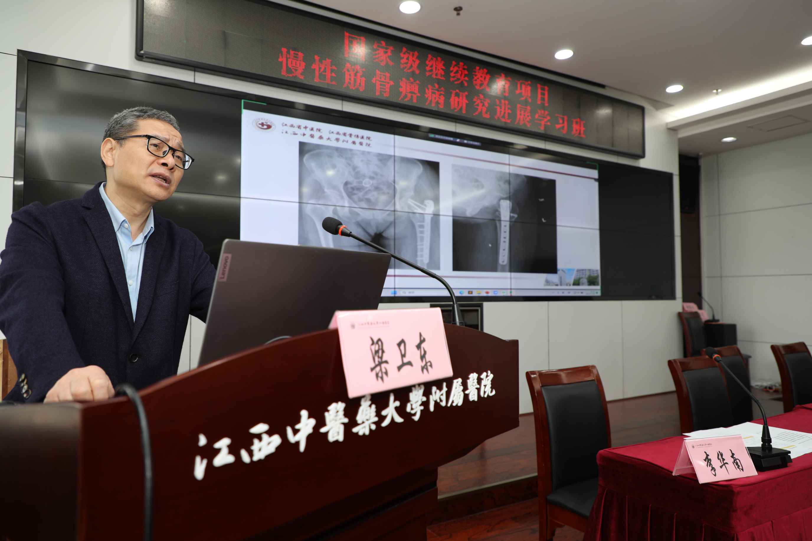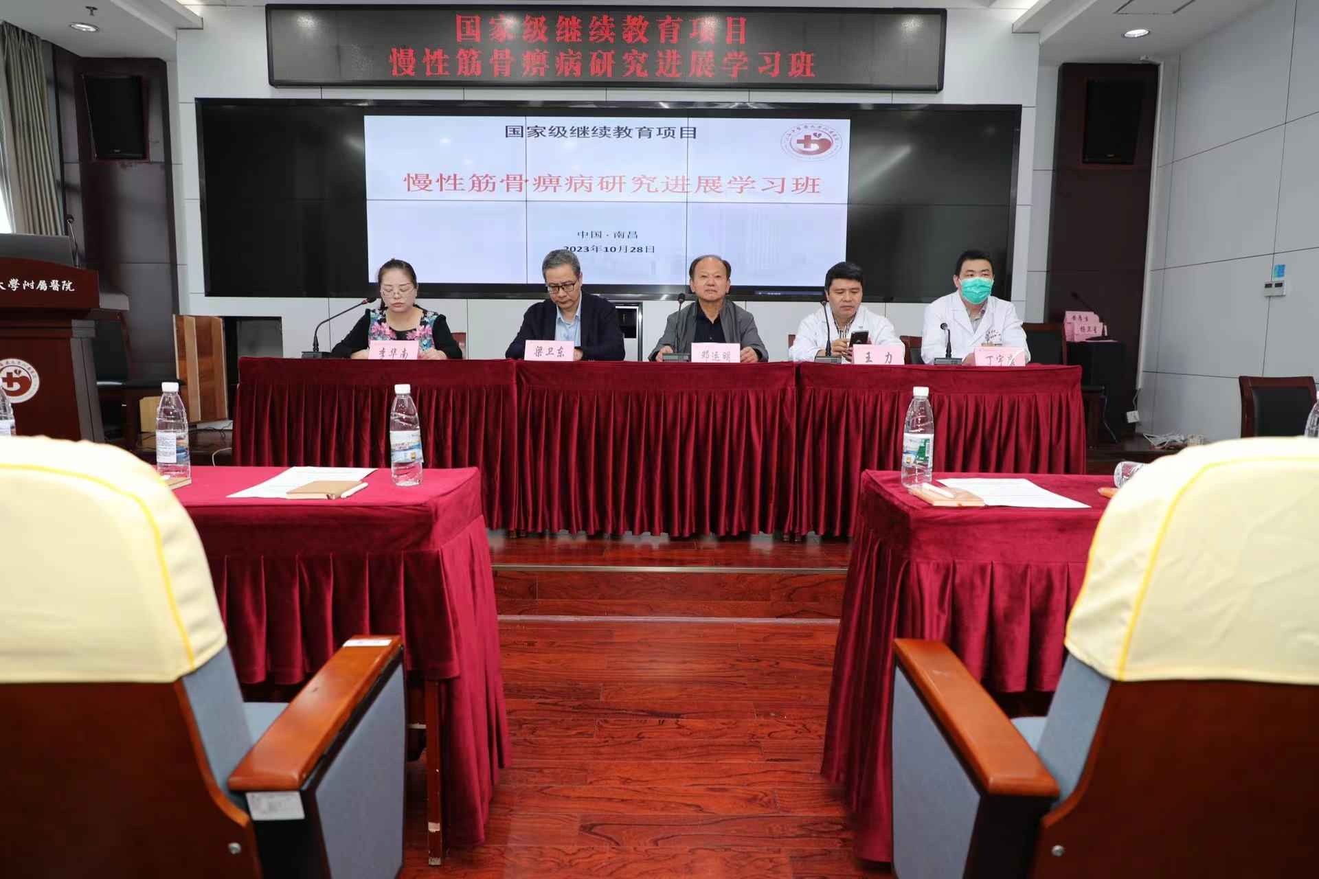 2023年10月27—28日,国家级继续教育项目——慢性筋骨痹病研究进展学习班在江西南昌顺利召开。本次学习班由金瓶梅电影 主办,省内外300余名专家学者以线上线下相结合的方式共同参与。参加讲座的学者有国医大师施杞教授、江西省国医名师邓运明教授、苏州市中医医院姜宏教授、上海中医药大学附属龙华医院莫文教授、浙江中医药大学许超教授、广东省第二中医院刘文刚教授,以及江西省骨伤医院院长梁卫东主任中医师,关节骨科王力主任中医师、金瓶梅电影 风湿免疫科丁宇康副主任中医师、科研科李华南教授等。