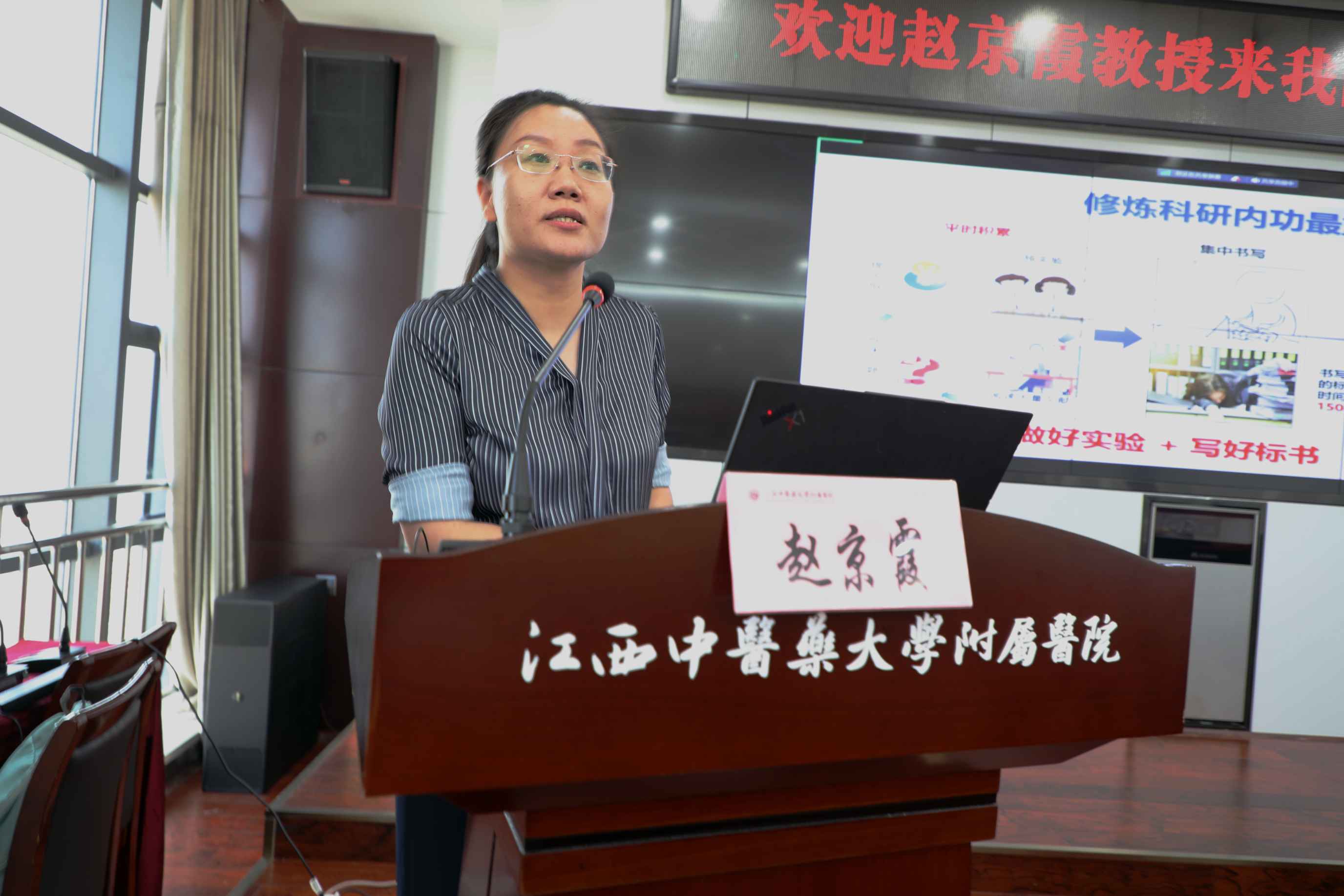为进一步提升广大教师国家自然科学基金标书撰写水平,营造良好科技创新氛围,11月4日,学校特邀首都医科大学附属北京中医医院、北京市中医药研究所办公室主任赵京霞研究员,在附属医院第一会议室作了题为“删繁就简三秋树,领异标新二月花——如何撰写国家自然科学基金标书立项依据”的主题讲座,讲座由附属医院副院长邵益森主持,线上线下共200人参加。