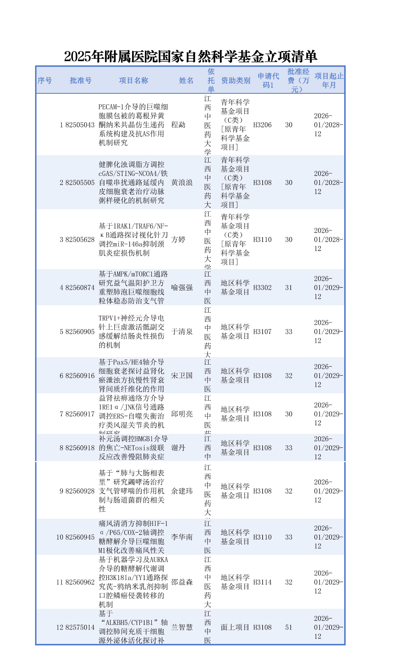近日,国家自然科学基金委员会公布了2025 年度国家自然科学基金集中接收申请项目评审结果。金瓶梅电影共获资助12项,其中面上项目1项,青年科学基金项目3项,地区基金项目8项,获准直接经费397万元,立项名单如下: