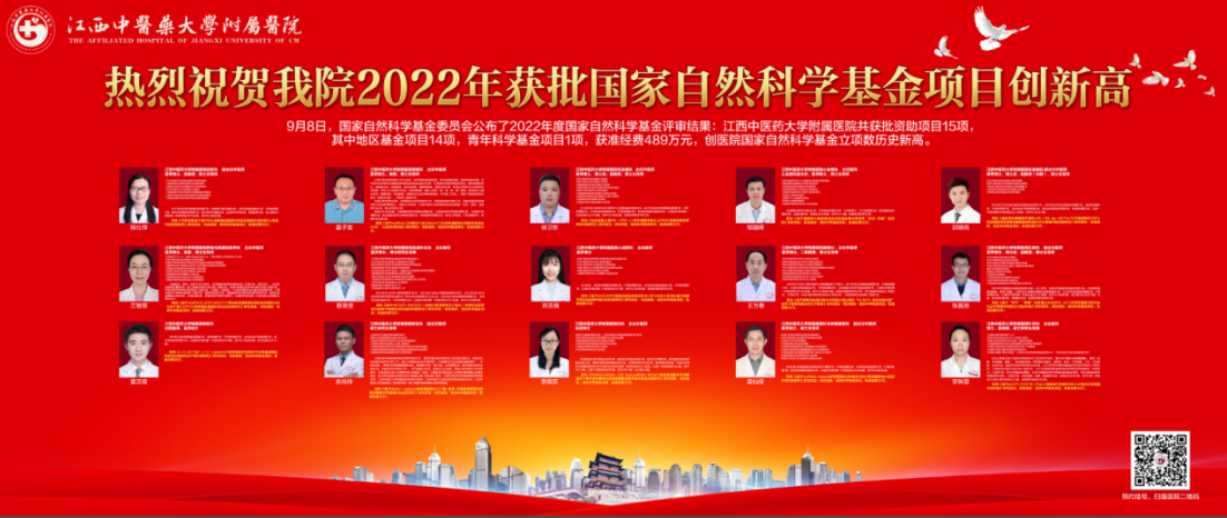 2022年共计申报550余项厅局以上科研课题(江西省自然科学基金项目除外),其中获批国家自然科学基金资助项目15项,包括青年科学基金项目1项,地区基金项目14项,江西省中医药科技计划项目127项;江西省卫生健康委科技计划项目63项;荣获江西省科学技术奖单位提名5项。