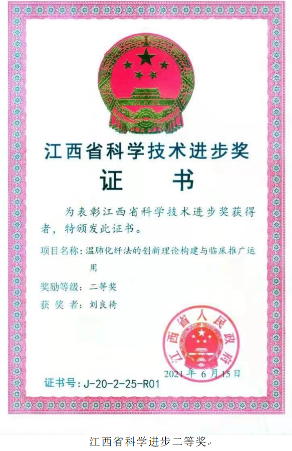 温肺化纤颗粒项目获第七届中国国际“互联网+”大学生创新创业大赛铜奖、江西省“互联网+”大学生创新创业大赛金奖、2021年创响中国赣江新区站“中医药+”创新创业大赛冠军及2020年江西省“大众创业、万众创新”活动周赣江新区站暨赣鄂中医药高校抗疫项目双创交流决赛一等奖。