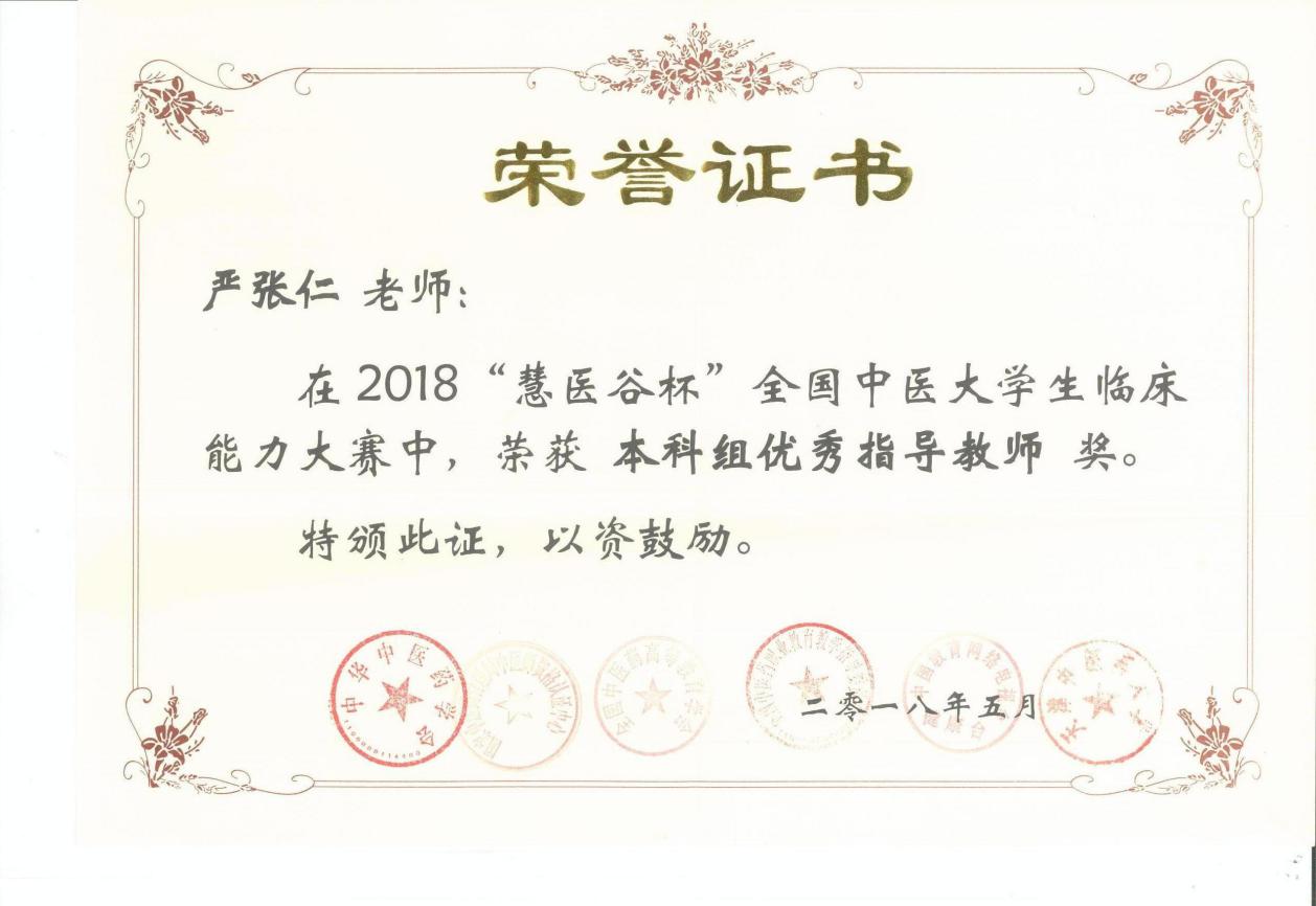 严张仁 “慧医谷杯”全国中医大学生临床能力大赛优秀指导老师