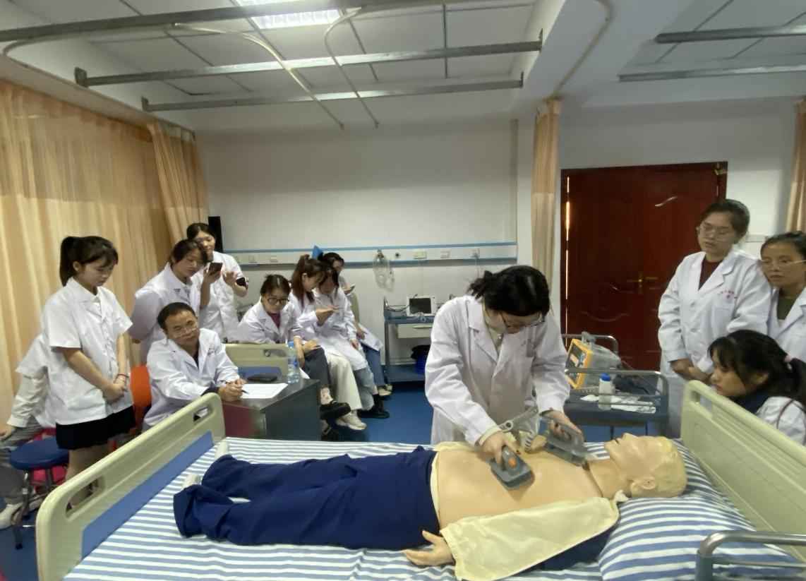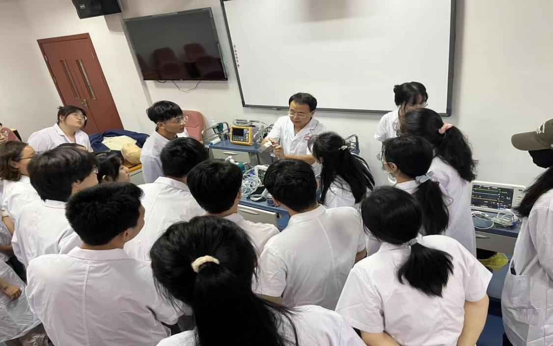 (图为中西医内科教研室陈智军老师演示心电监护、电除颤)