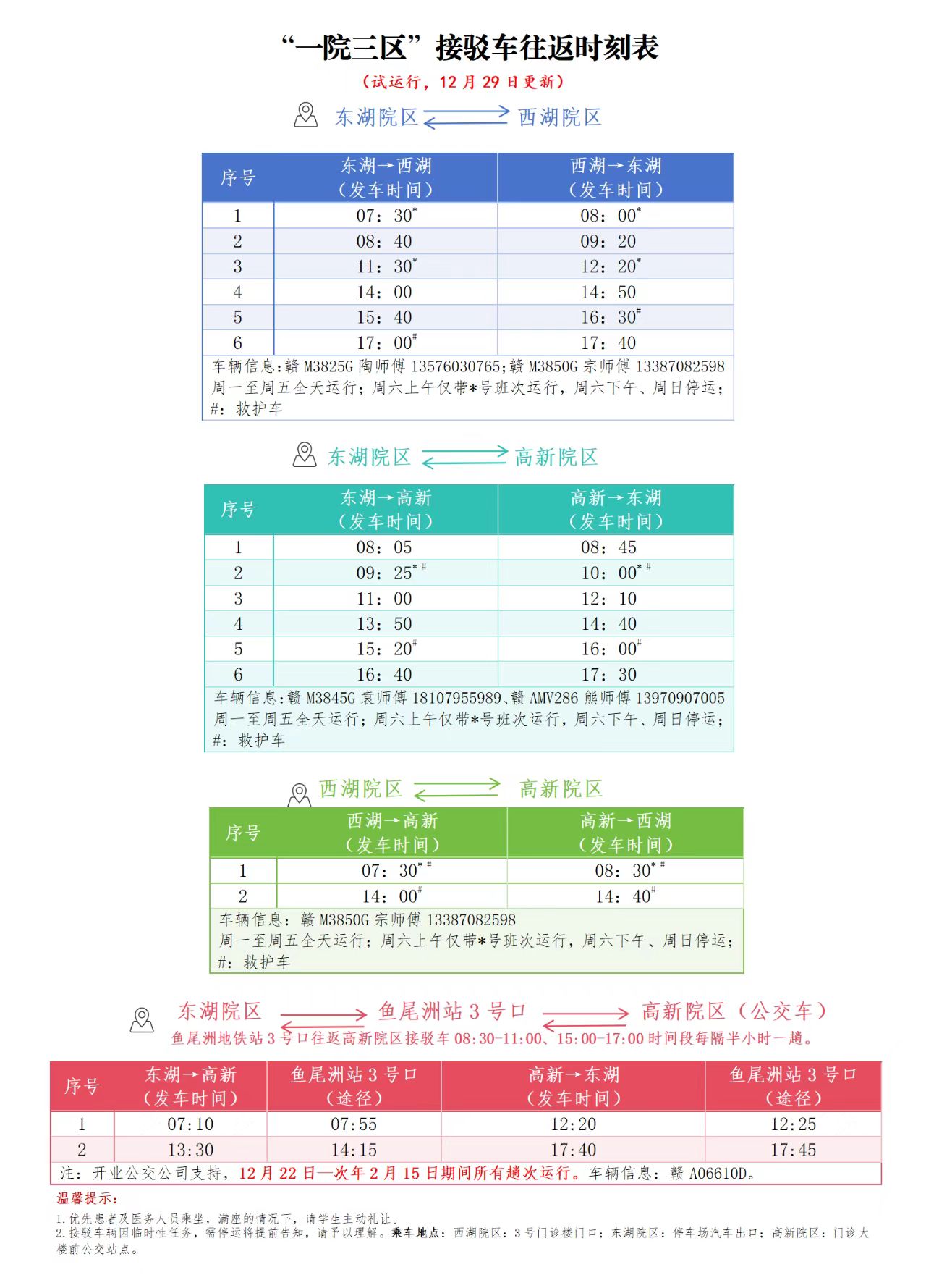 一院三区接驳车时刻表