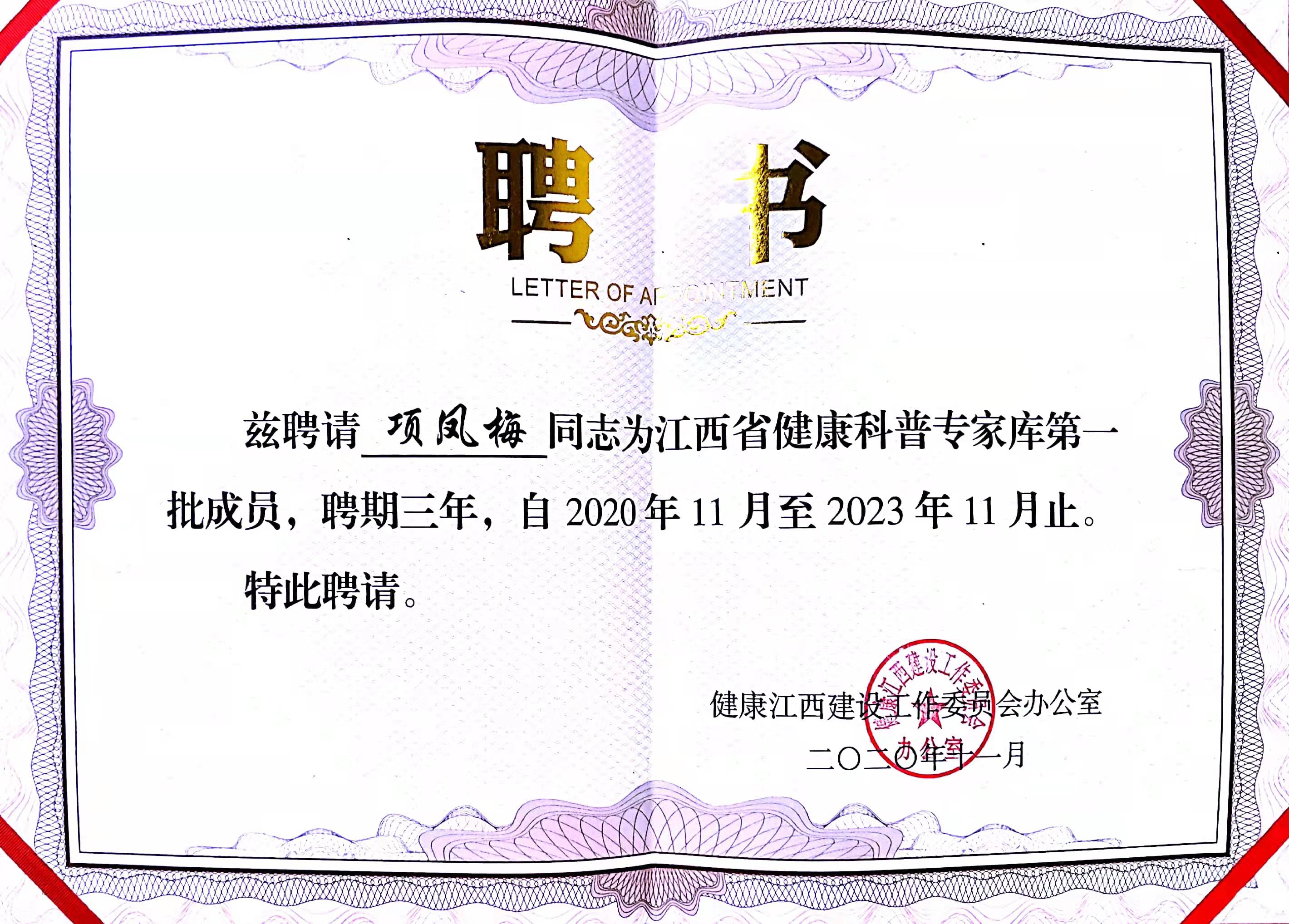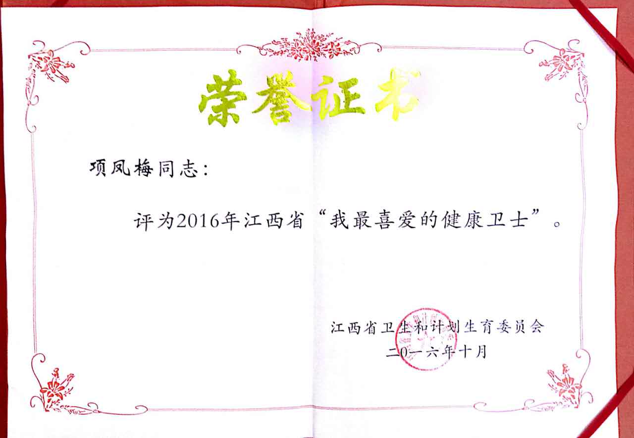 被省卫计委评为“我最喜爱的健康卫士”