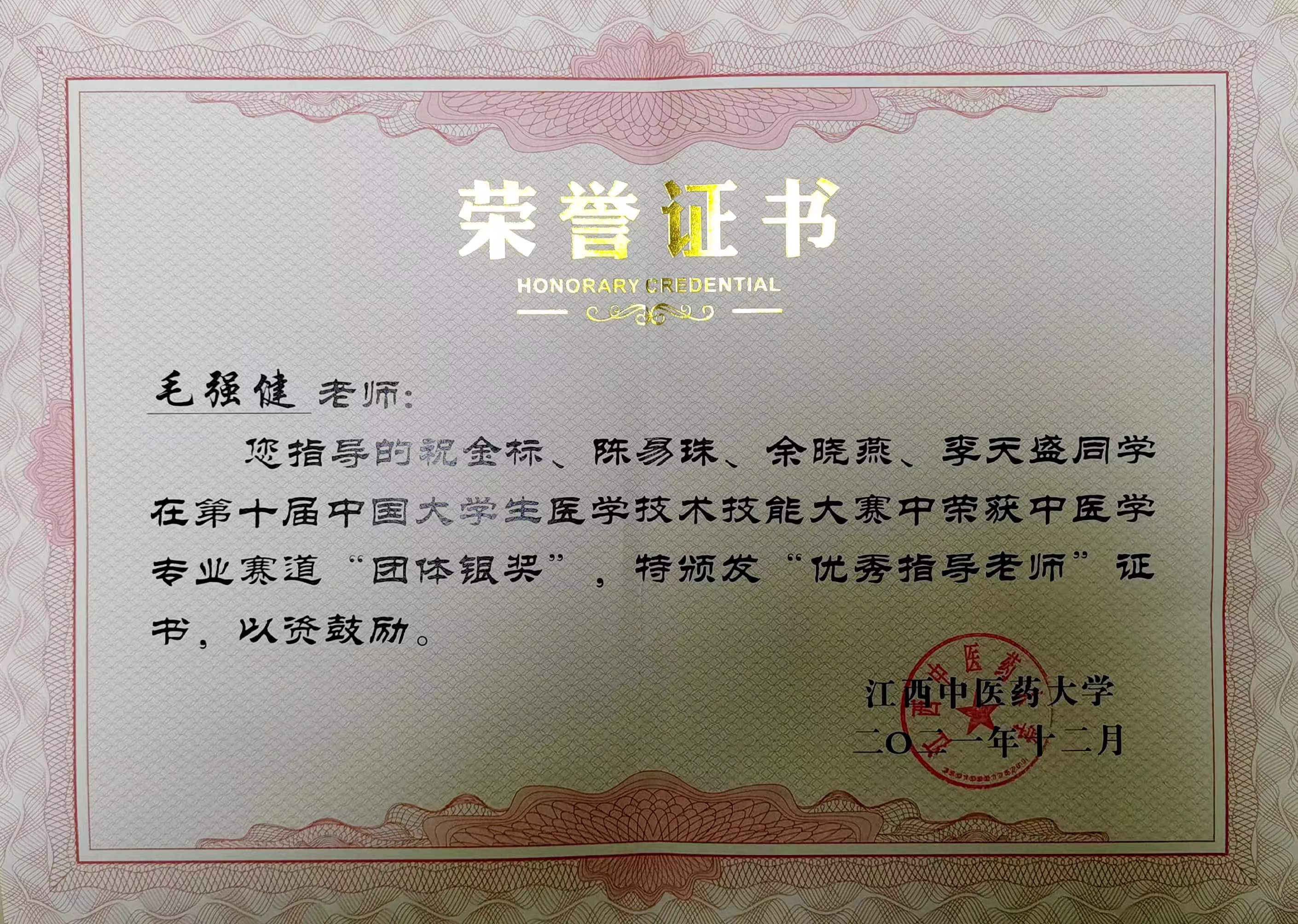 指导学生比赛荣获中医学专业赛道“团体银奖”,被评为“优秀指导老师”