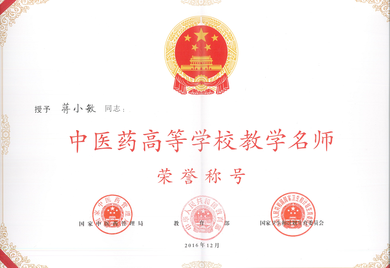 蒋小敏第五批全国老中医药专家学术经验继承工作指导老师