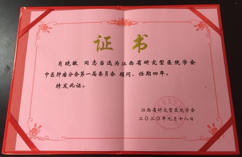 肖晓敏当选为江西省研究型金瓶梅电影 学会中医肿瘤分会第一届委员会顾问