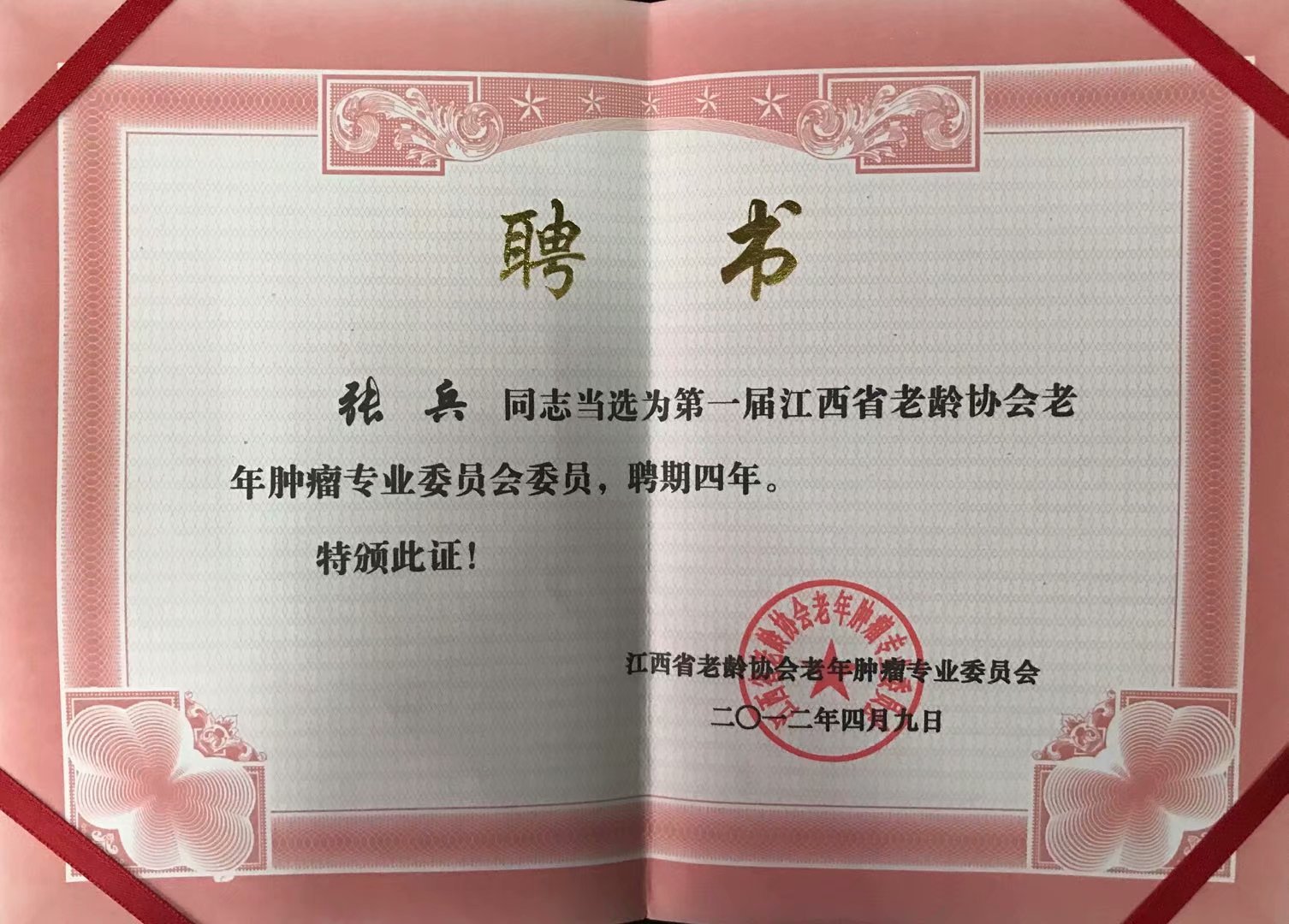张兵当选第一届江西省老龄协会老年肿瘤专业委员会委员