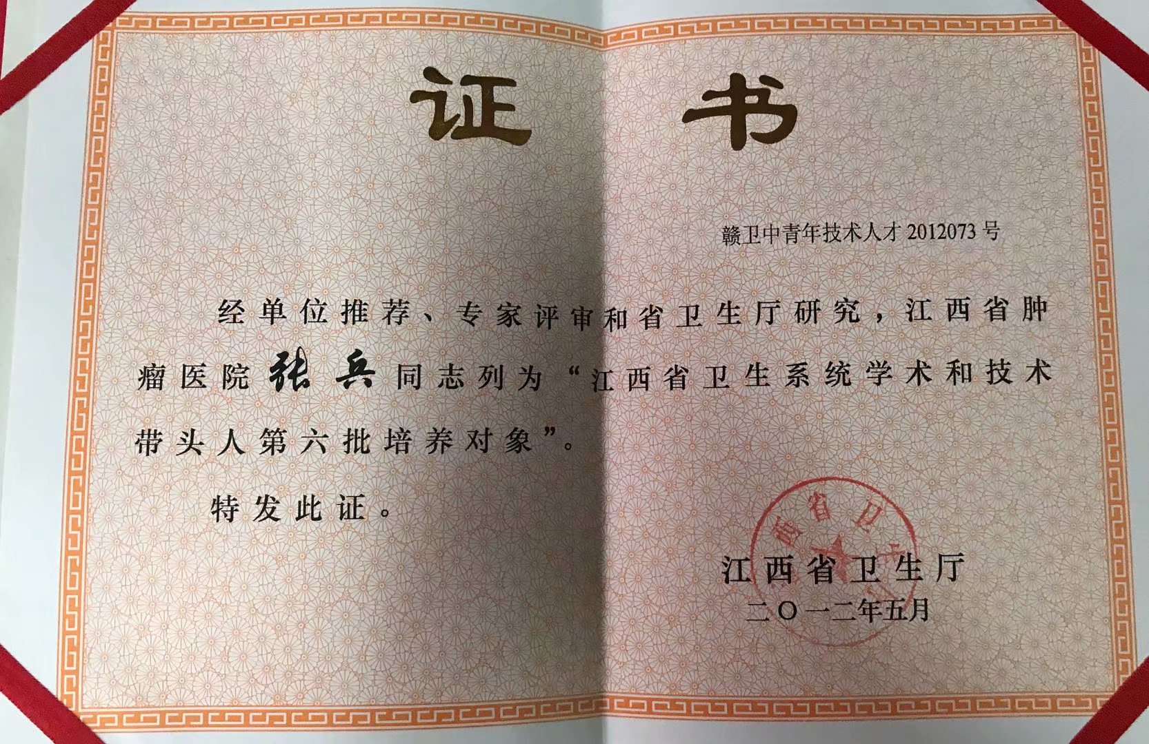 张兵同志列为“江西省卫生系统学术和技术带头人第六批培养对象”