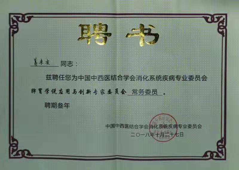 葛来安当选中国中西医结合学会消化系统疾病专业委员会常务委员