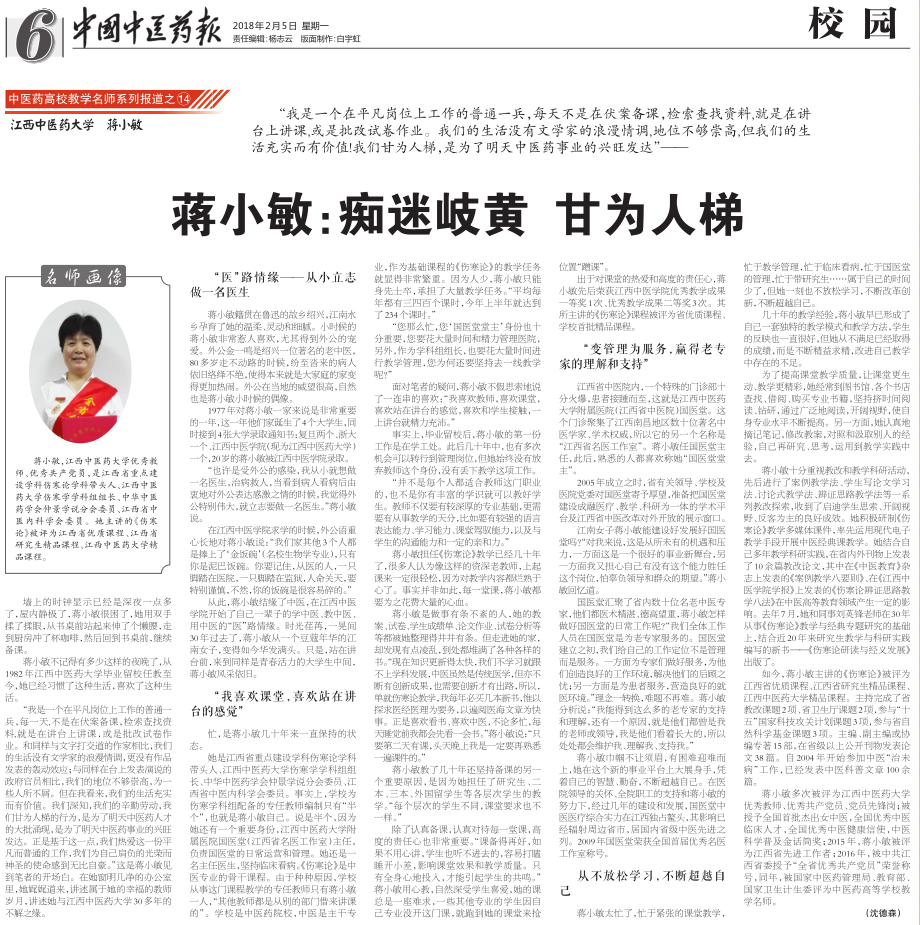 【中国中医药报】蒋小敏:痴迷岐黄 甘为人梯