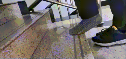 前脚掌踩在台阶边缘,患侧脚后跟缓缓向下落,直至感到脚底和跟腱牵拉感。