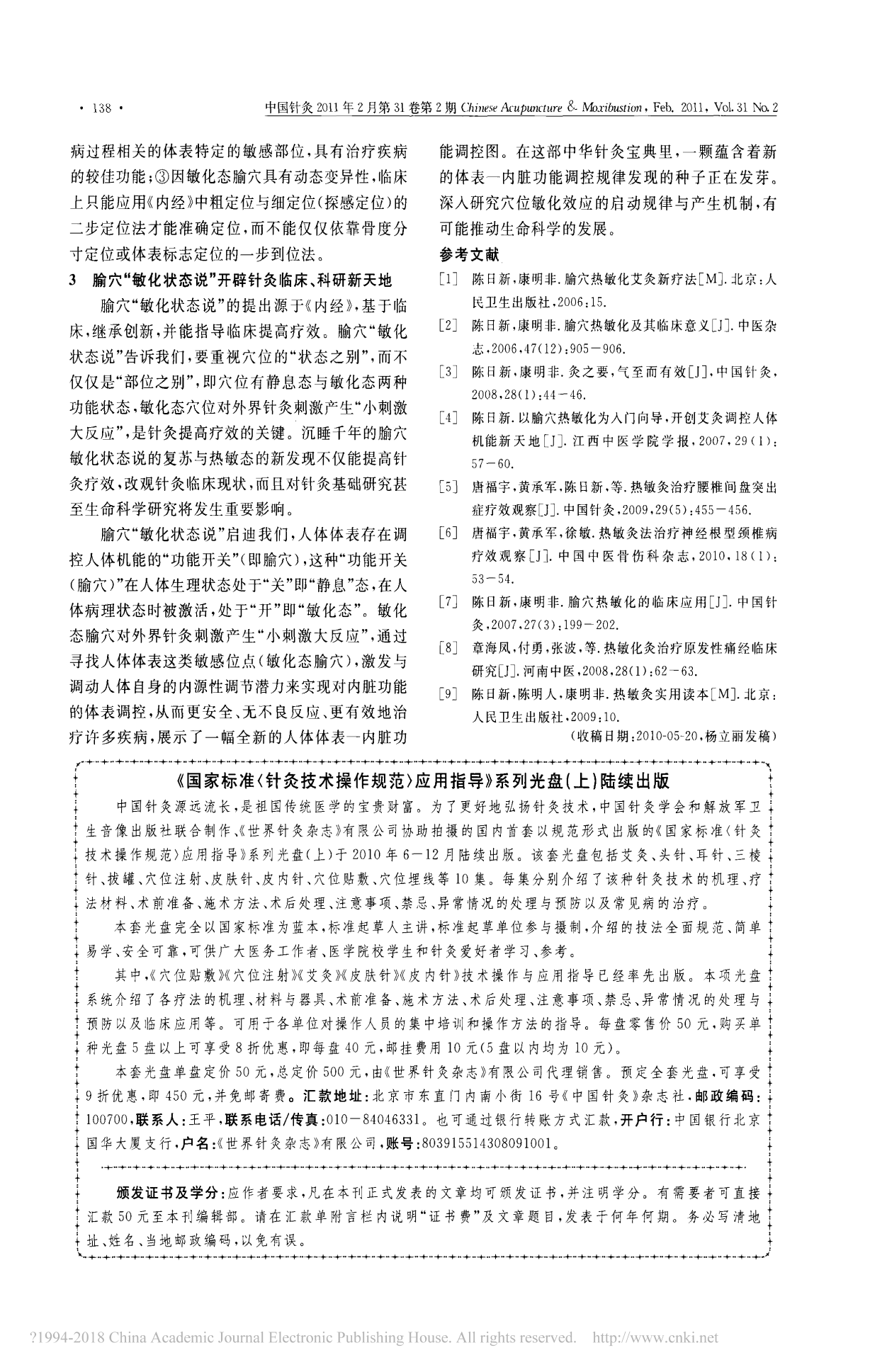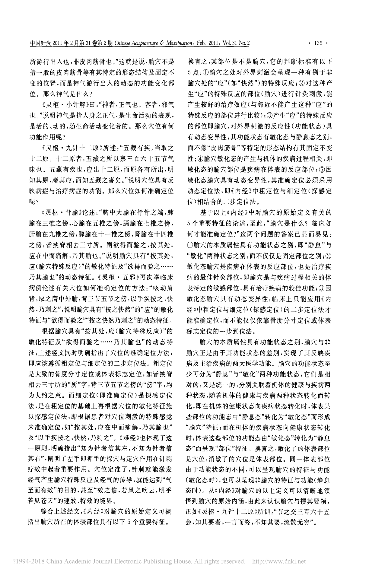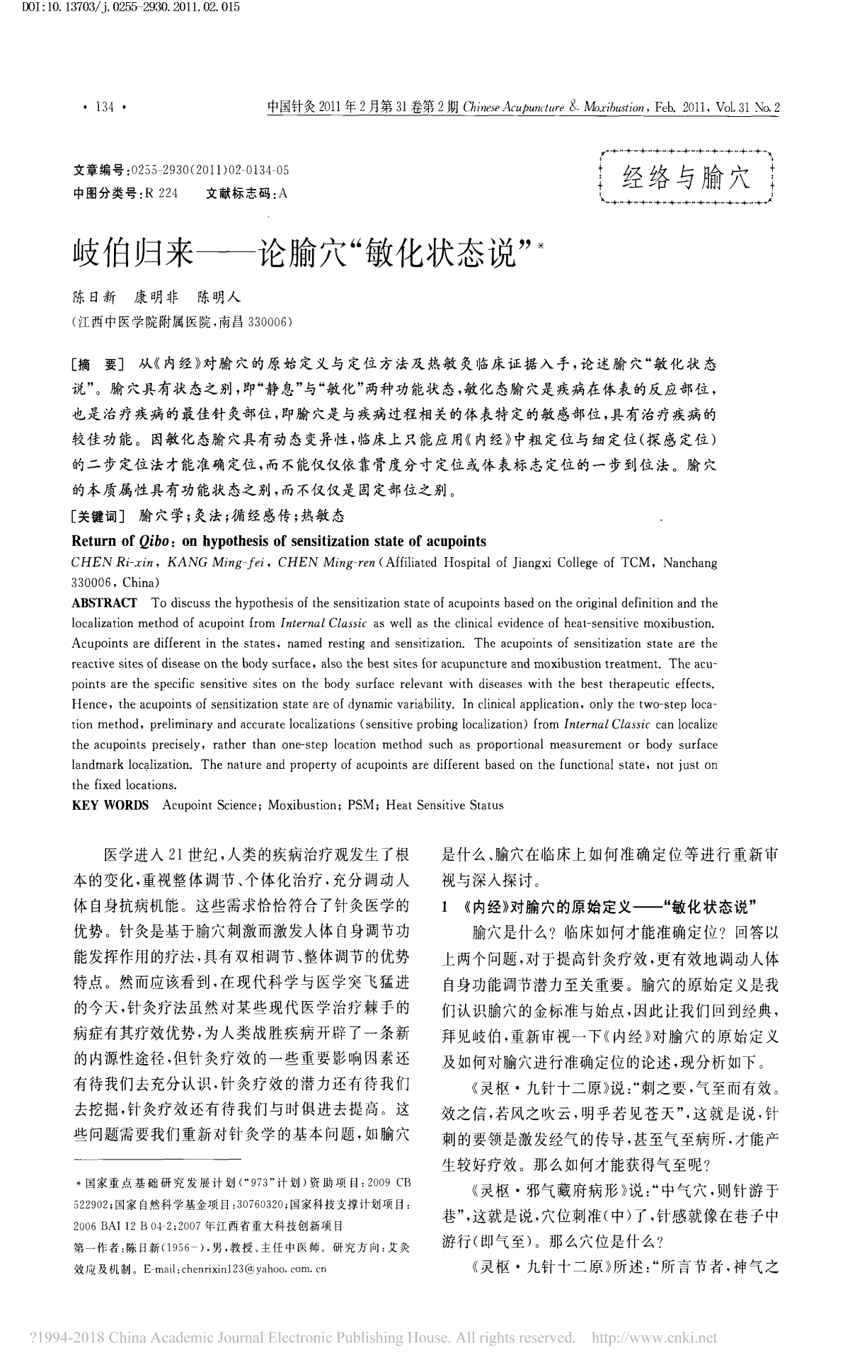 【学术】陈日新:岐伯归来——论腧穴“敏化状态说”