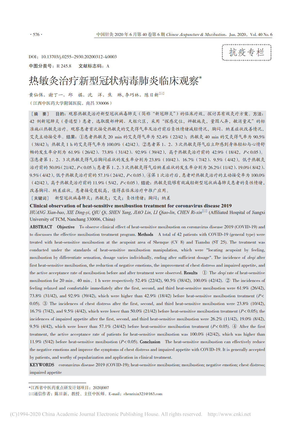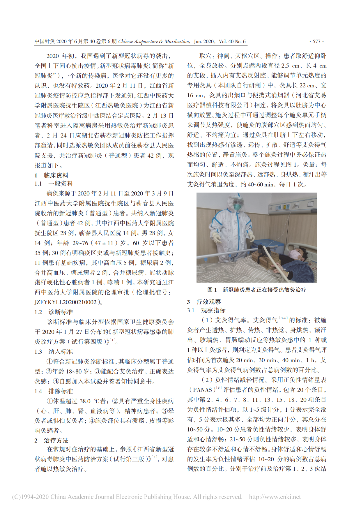 【学术】热敏灸治疗新型冠状病毒肺炎临床观察