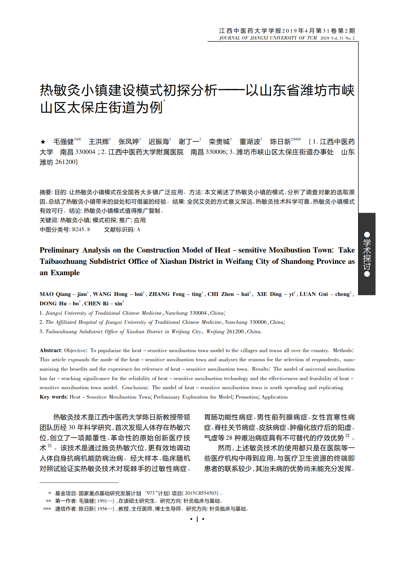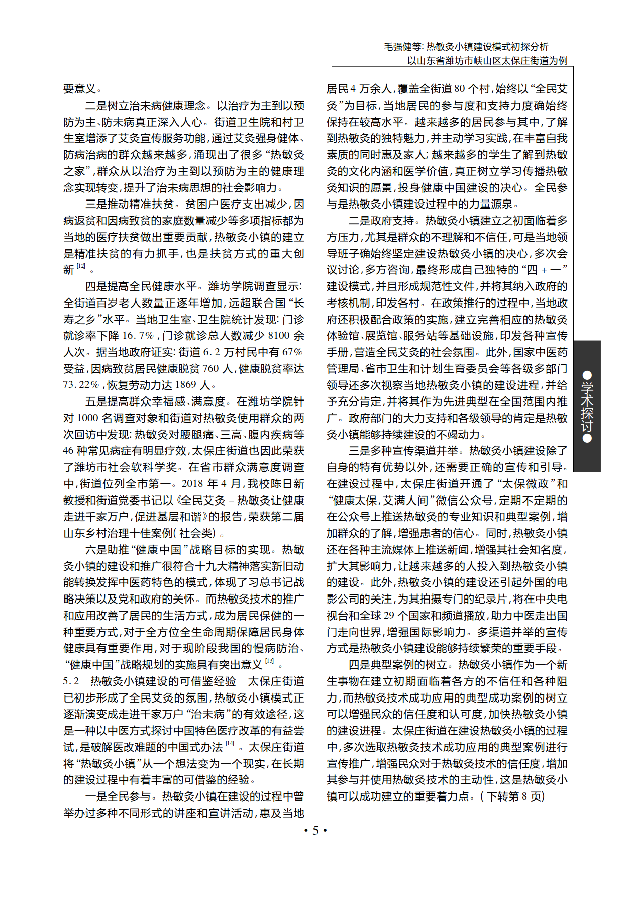 【学术】热敏灸小镇建设模式初探分析———以山东省潍坊市峡 山区太保庄街道为例