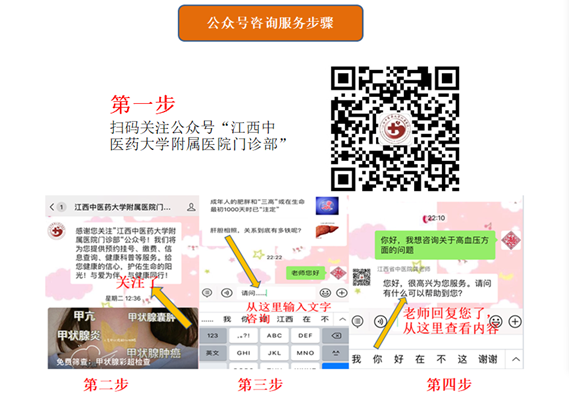 就诊者可将问题通过公众号中对话框进行咨询,老师将会逐一单独为您解答。同时获得更多健康养生知识,赶快关注公众号吧! 我为群众办实事,从点滴力行。