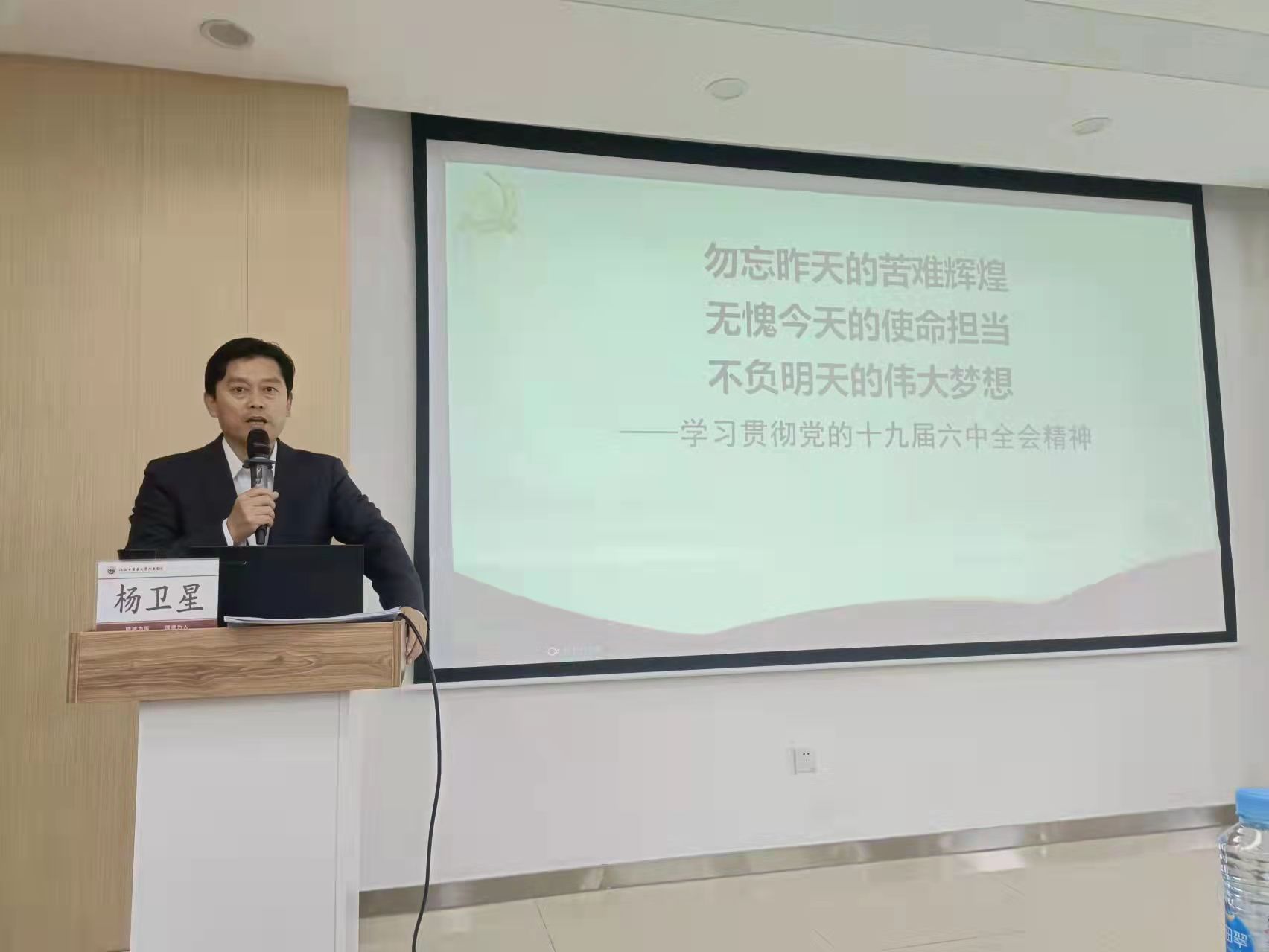 杨卫星在宣讲中指出,党的十九届六中全会听取和讨论了习近平受中央政治局委托作的工作报告,审议通过了《中共中央关于党的百年奋斗重大成就和历史经验的决议》,审议通过了《关于召开党的第二十次全国代表大会的决议》,要准确把握六中全会精神的精髓要义,深刻领悟全会重大意义贯彻落实全会精神。他还指出,省第十五次党代会是在我们党成立一百周年之际,开启全面建设社会主义现代化国家新征程的历史节点,全国上下深入学习贯彻党的十九届六中全会精神的关键时刻,召开的一次十分重要的大会。