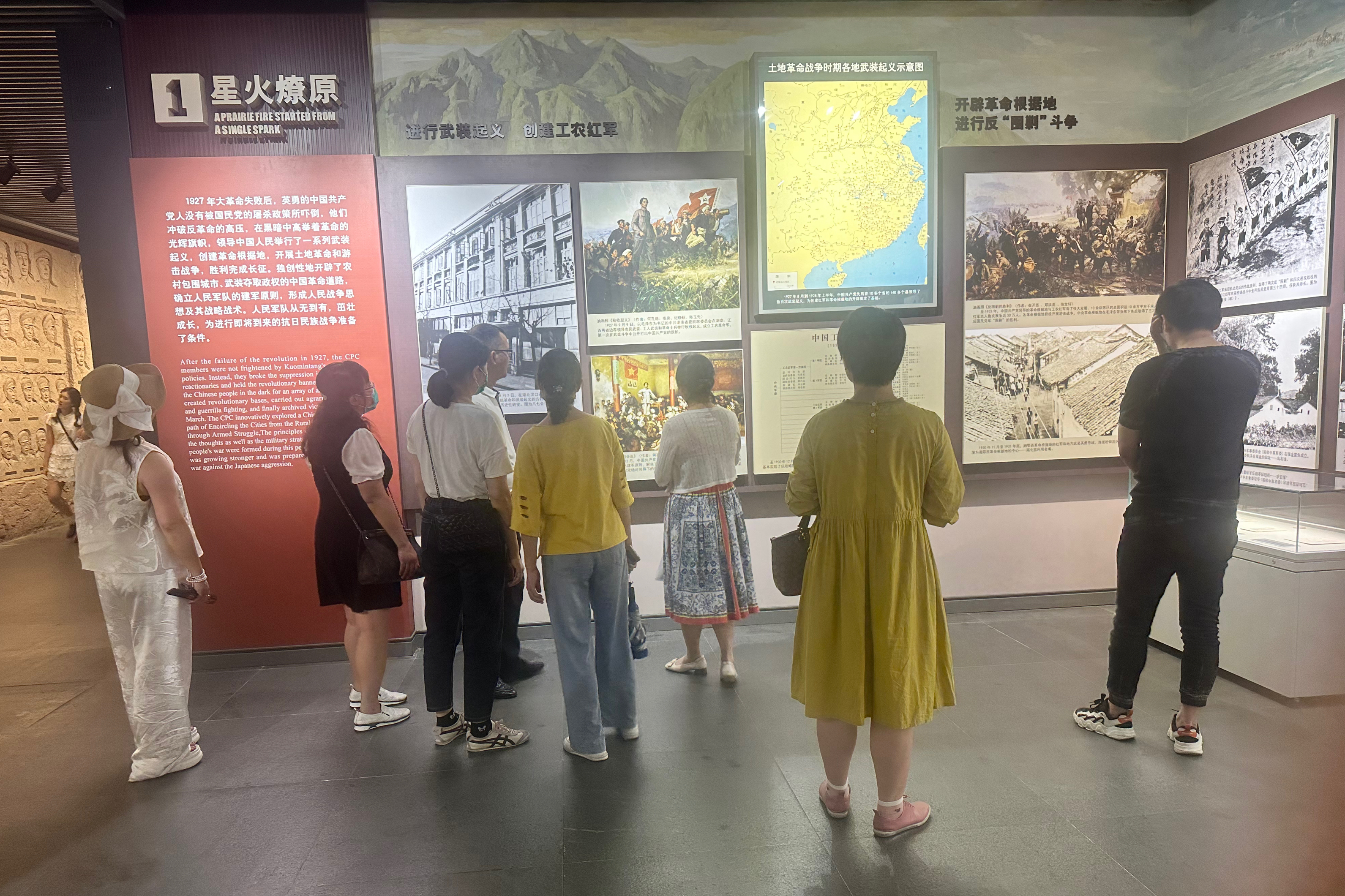 纪念馆内分六部分,展示了“危难中奋起”“伟大的决策”“打响第一枪”“南征下广东”“转战上井冈”“群英耀中华”等主题内容,生动展现了自南昌八一起义开始,中国人民解放军从小到大、由弱到强发展的光辉历程。通过解说员的讲解,党员们详细地了解八一起义的历史背景、起义过程和斗争历程等内容,仿佛又回到了那个弥漫着战火硝烟的时代,感受着革命先烈们浴血奋战、英勇杀敌的历史场景,重温了激情燃烧的革命岁月。