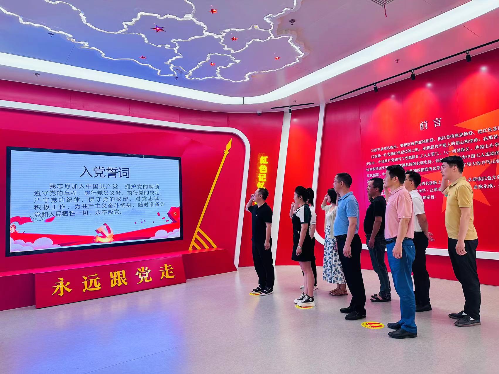 活动开始,全体党员集体重温了入党誓词,随后在讲解员的带领下,参观了红色图书馆的各个展厅。江西省图书馆红色图书馆是目前国内面积最大的红色主题图书馆,馆区面积1017平方米,共分为红色记忆重温区、红色文创展示区、红色足迹追寻区、红色基因传承区、红色场景体验区、红色江西宣传区、红色影音欣赏区、红色文献阅览区八大区域,馆内藏有红色图书近万册,红色期刊近千种,红色文化数据库十余个,还配置球幕影院、VR军事体验设备等,提供红色文献的阅览与研究、红色教育团体学习等特色服务。