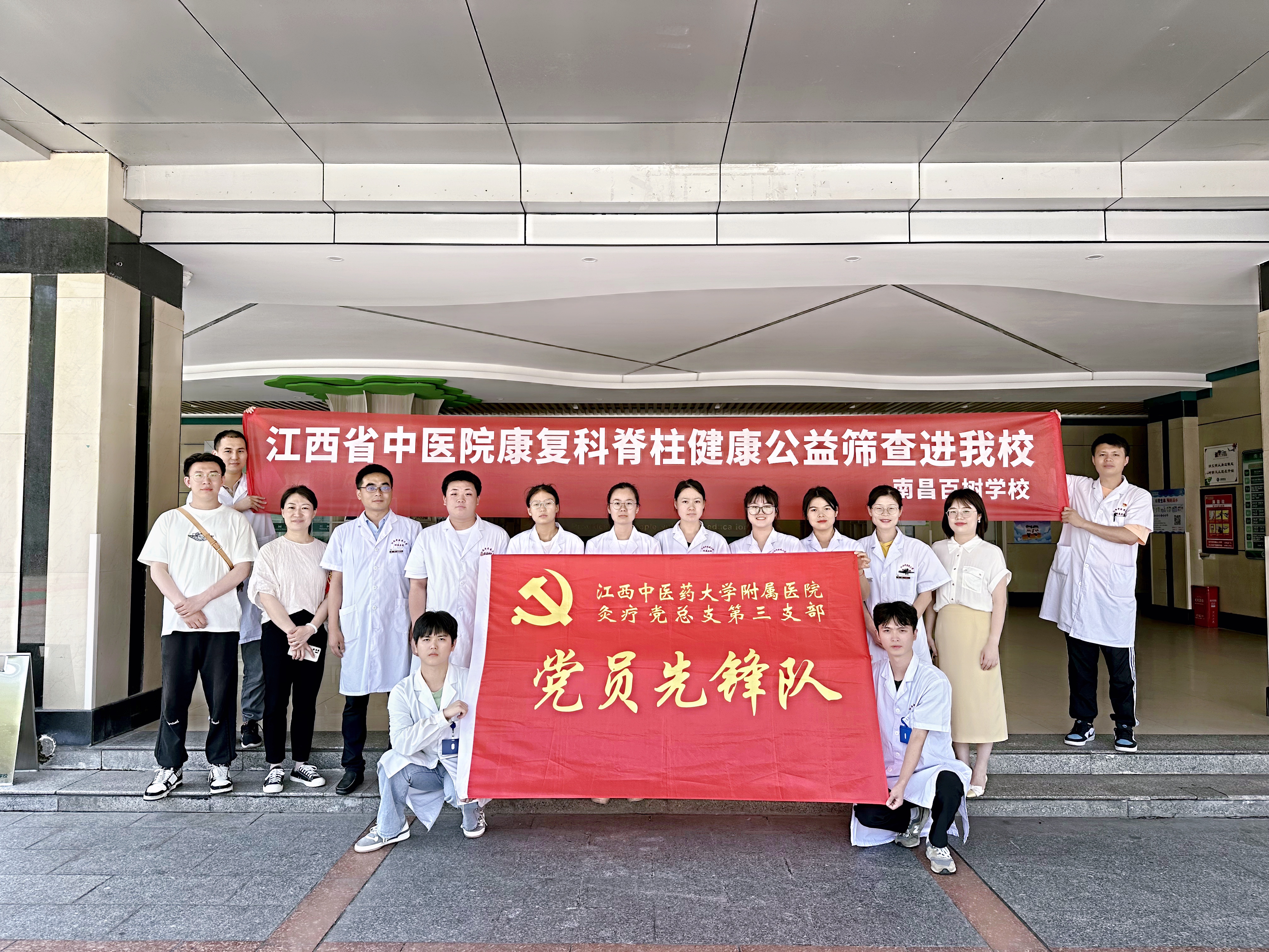为做好青少年脊柱侧弯防控工作,增强青少年儿童脊柱健康防控意识,推动主题教育走实走深,提高党员为人民健康服务的意识,6月5号至6月10号,灸疗党总支第三支部组织康复科党员志愿者组成脊柱侧弯康复小组深入南昌市百树教育集团桃苑校区、九里象湖城校区开展脊柱健康公益筛查,普及脊柱健康知识,培养同学们养成健康生活习惯。