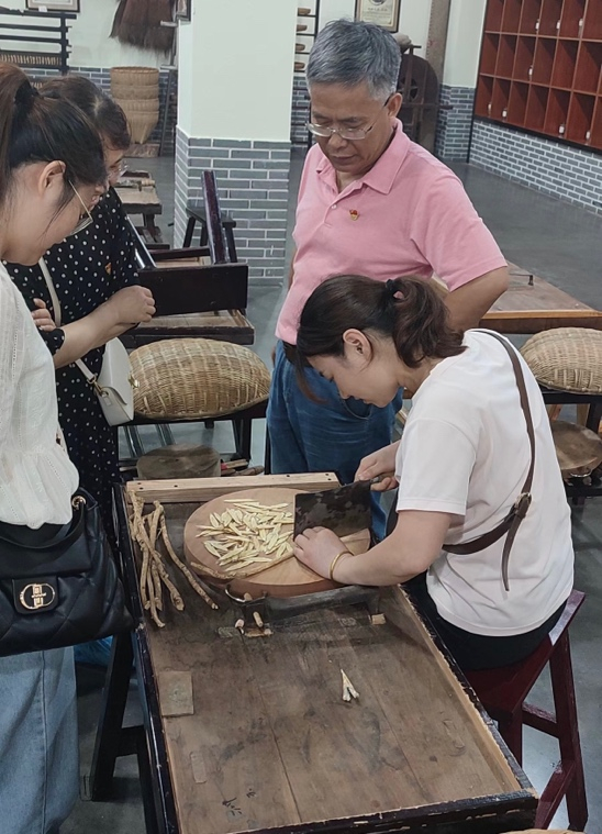 在华润江中饮片厂的大力支持下,企业负责人随后带领大家参观了中药材原料库、中药饮片生产车间、中药饮片成品库、中药标本馆,详细介绍了常见中药饮片真伪鉴别要点、中药饮片生产流程和质量控制标准。在中药炮制实训室,全体党员与中药房青年志愿服务队成员参观学习了各具特色的传统炮制工艺,上手体验了中药饮片槟榔、党参与黄芪的切制。