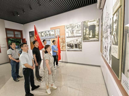 朱德军官教育团,即讲武堂,1927年初,朱德在此创办了国民革命军第三军军官教育团,成为南昌革命运动的一个基地和堡垒,为革命培养了大批军事骨干,在“八一”南昌起义时起了重要作用。党员们先后参观了朱德办公室、教育团会议室、教职员办公室,以及朱德军官教育团革命活动图片展、朱德军官教育团复原陈列等,详细了解朱德等老一辈革命家在南昌培养革命军事骨干、开展武装斗争的光辉事迹。