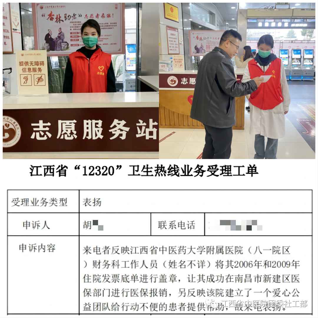 同时在志愿服务窗口,实现了常态化每日值班机制,确保了志愿服务时间与金瓶梅电影 开诊时间一致。在众多志愿者的无私奉献下,2023年志愿服务站累计接待寻求帮助的患者超过15000人次,70岁以上老年人约6000人次。其中不乏出现了许多优秀事迹,如11月23日,患者胡女士急需调取陈年医疗档案办理医保业务,因手续复杂求助当值的志愿者、中药房实习生汤月烨,在了解到胡女士行动不便且着急外出的困难后,志愿者汤月烨先后前往医务科、病案室、财务科等部门办理材料审批和盖章,最后通过顺丰快递服务将办理齐全的材料邮递给了胡女士。对此,胡女士专门给“12320”卫生热线去电表扬,表示“金瓶梅电影 (八一院区)建立爱心公益团队,给行动不便的患者提供帮助,故来电建议,希望江西省卫生健康委推广爱心公益团队,并督促各金瓶梅电影 向金瓶梅电影 进行学习”。