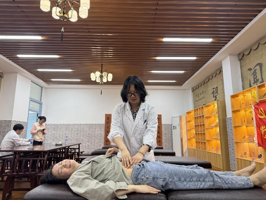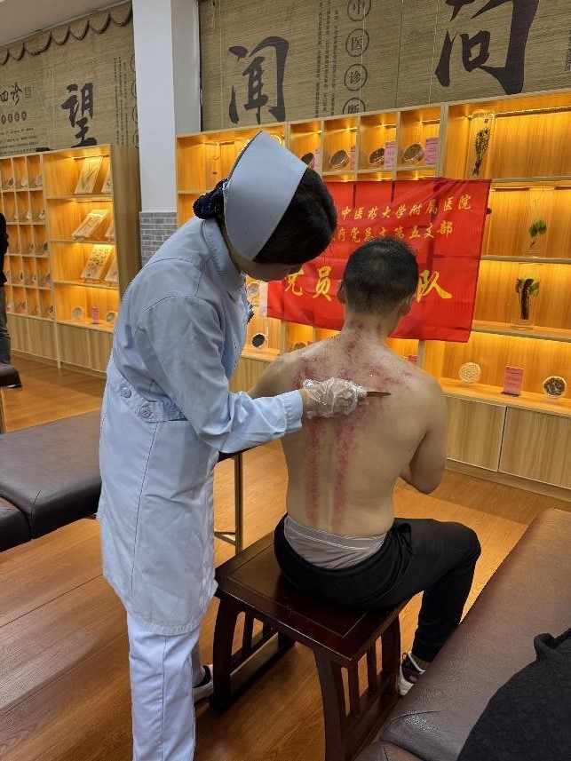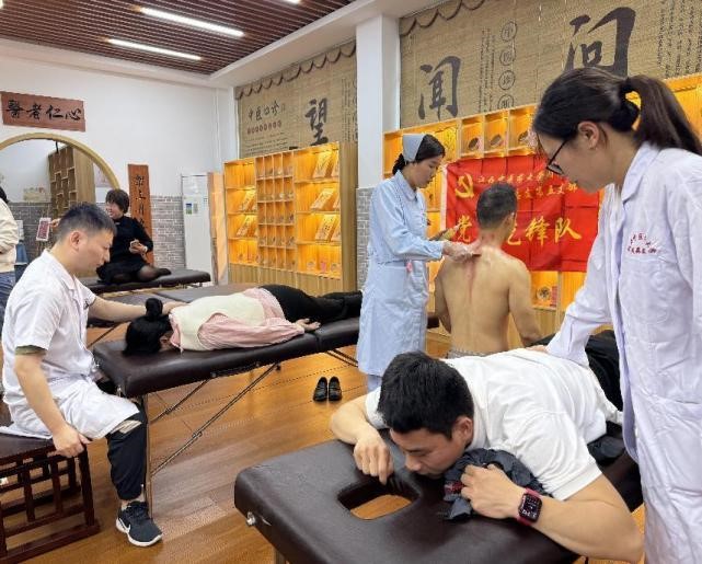 随后,医疗团队针对教师们的病情需要,制定不同的治疗方案,运用针灸、推拿、整脊、热敏灸、刮痧等中医特色疗法,让他们深度体验中医操作的同时,缓解了颈肩不适症状。