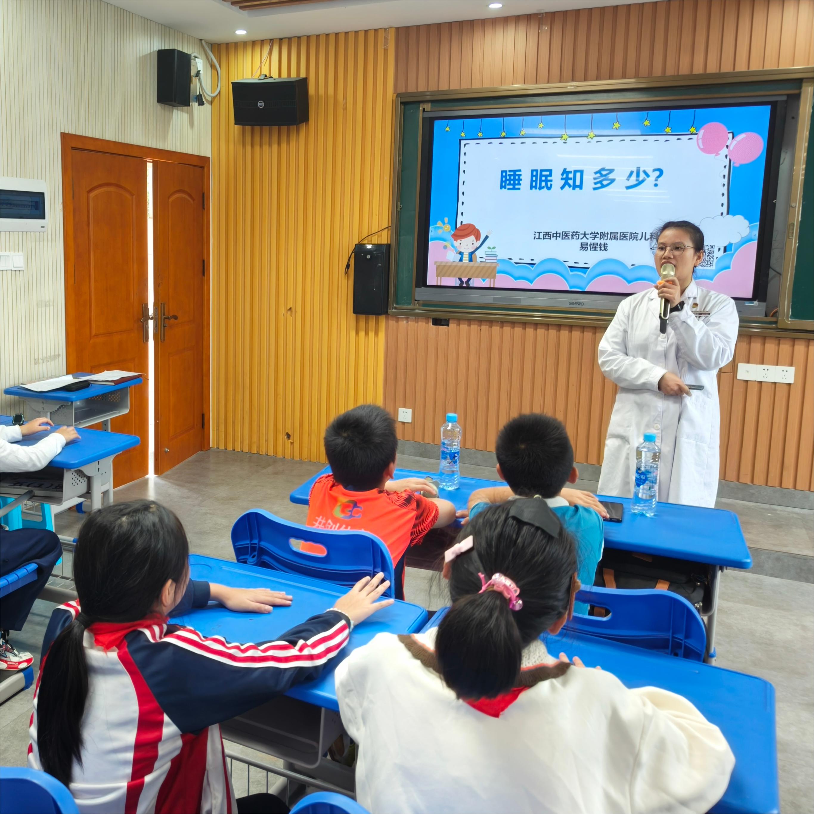 健康科普由睡眠医学中心成员、金瓶梅电影儿科主治中医师易惺钱主讲。她首先向前来听课的师生们科普了良好的睡眠对于发育中儿童的重要性,会对大脑的能量调节和健康发育,以及学习能力、个性塑造、情绪调节和社会适应度等方面都有非常深刻的影响。让孩子们深入浅出地认识到“睡觉睡得好,身体加倍好!”。