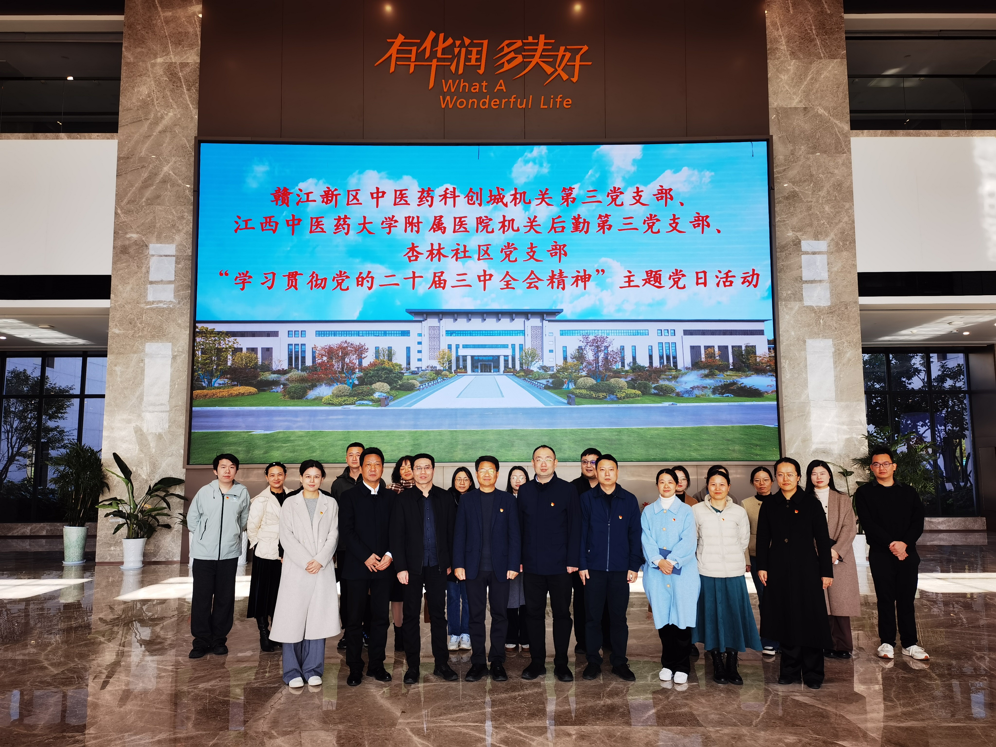 11月29日,为深入学习贯彻党的二十届三中全会精神,进一步加强基层党组织建设,促进党建工作与业务工作深度融合,金瓶梅电影 机关后勤第三党支部联合赣江新区中医药科创城机关第三党支部、杏林社区党支部开展“学习贯彻党的二十届三中全会精神”主题党日活动,金瓶梅电影 党委副书记廖东华参加。