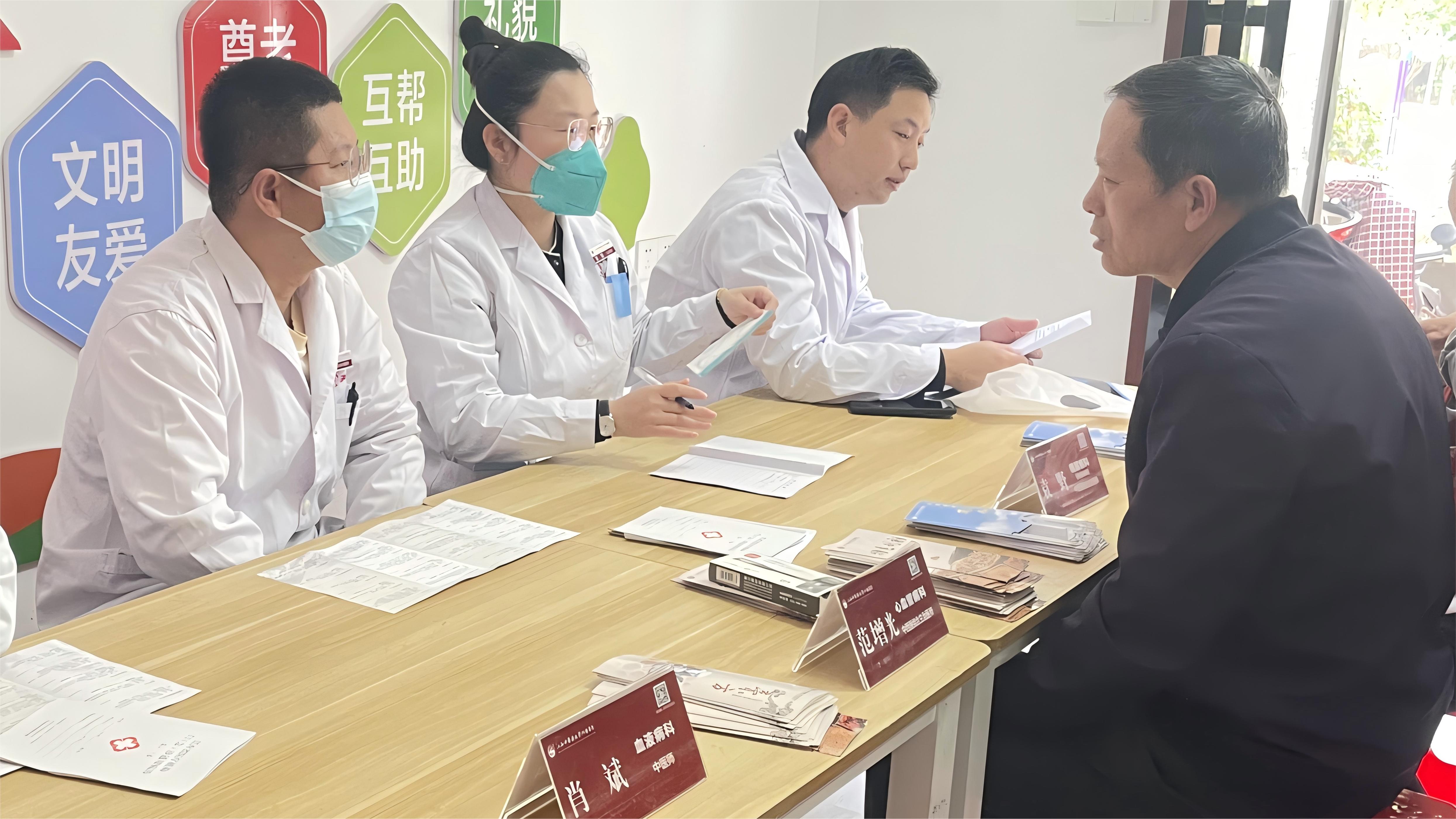 血液科、糖尿病科、心血管病科的专家则通过现场的血压、血糖测量,结合问诊的既往病史,为每一个前来测量的居民提供了包括用药、饮食等在内的专业医疗指导。