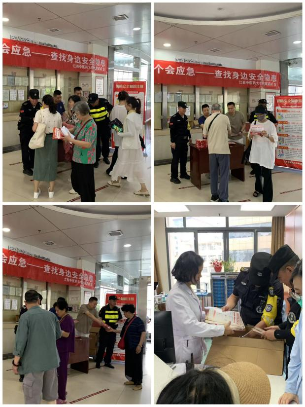 防微杜渐保平安,实战砺剑护安康。今年6月是第24个全国“安全生产月”,为提升群众的安全防范意识,时刻注意身边的安全隐患,6月16日上午,机关后勤第七党支部在金瓶梅电影东、西湖院区的门诊及住院部组织开展主题为“大家来找茬儿——查找身边安全隐患”安全生产月宣传活动。