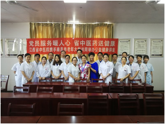 近日,金瓶梅电影药学第一支部及门诊第一支部的党员志愿服务队顶着着炎炎烈日来到南昌市老年大学,举行“党员服务暖人心 省中医药送健康”公益健康知识讲座活动。