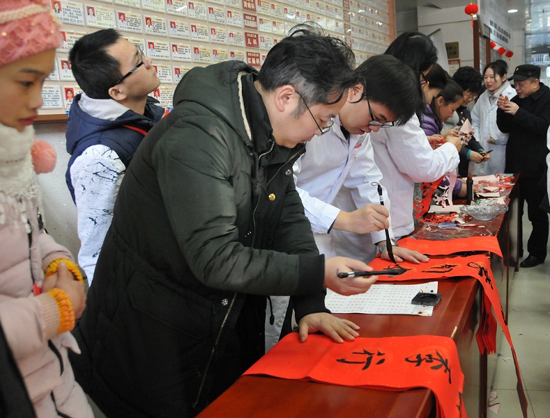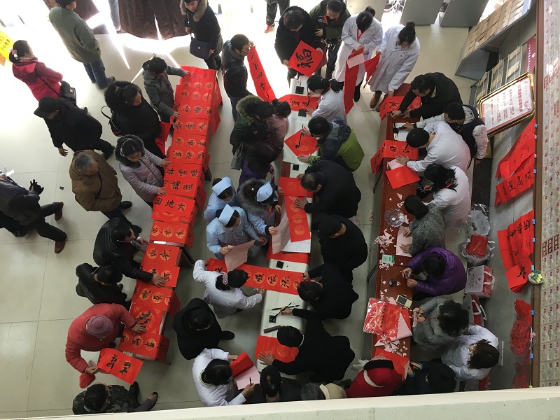 闻讯赶来的广大病友和金瓶梅电影 职工纷纷围了过来:“我要这幅字”“您帮我也写一幅吧”“我要福字”,大家争先恐后,挑选自己喜欢的春联。
